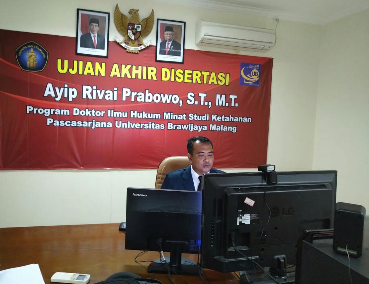 Ayip Rivai Prabowo, S.T., M.T. (Kaprodi D3 Teknik Mesin STTAL) yang melaksanakan ujian akhir sebagai mahasiswa Program Doktor Ketahanan Nasional Pascasarjana Universitas Brawijaya Malang Jawa Timur, yang pelaksanaannya secara darling online di Rupat Pulau Nipa Kampus STTAL Jl. Bumimoro-Morokrembangan Surabaya. Rabu ( 1/7/2020)