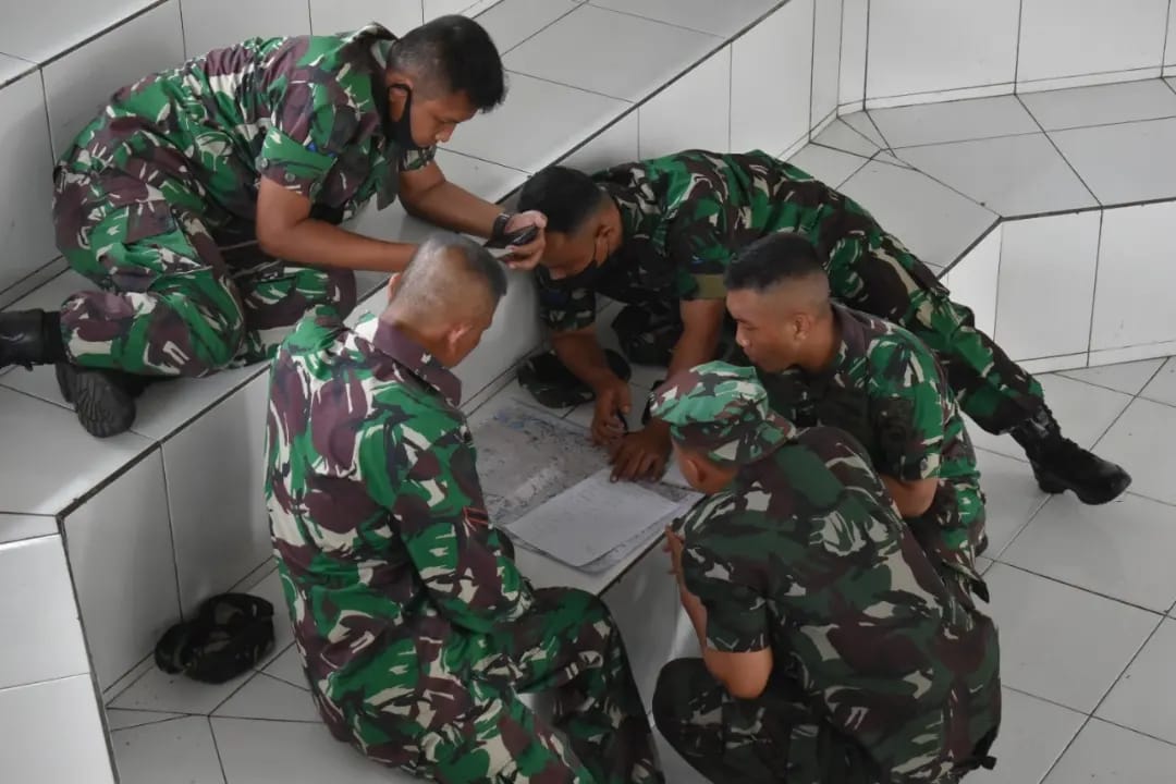 Jakarta, PW: Pelihara naluri tempur, prajurit Batalyon Infanteri 2 Marinir (Yonif 2 Marinir) memperdalam pengetahuan Ilmu Medan dan Membaca Peta (IMMP) yang bertempat di kelas lapangan Yonif 2 Marinir, Ksatrian Marinir Hatono Cilandak, Jakarta Selatan, Senin (31/01/2022).