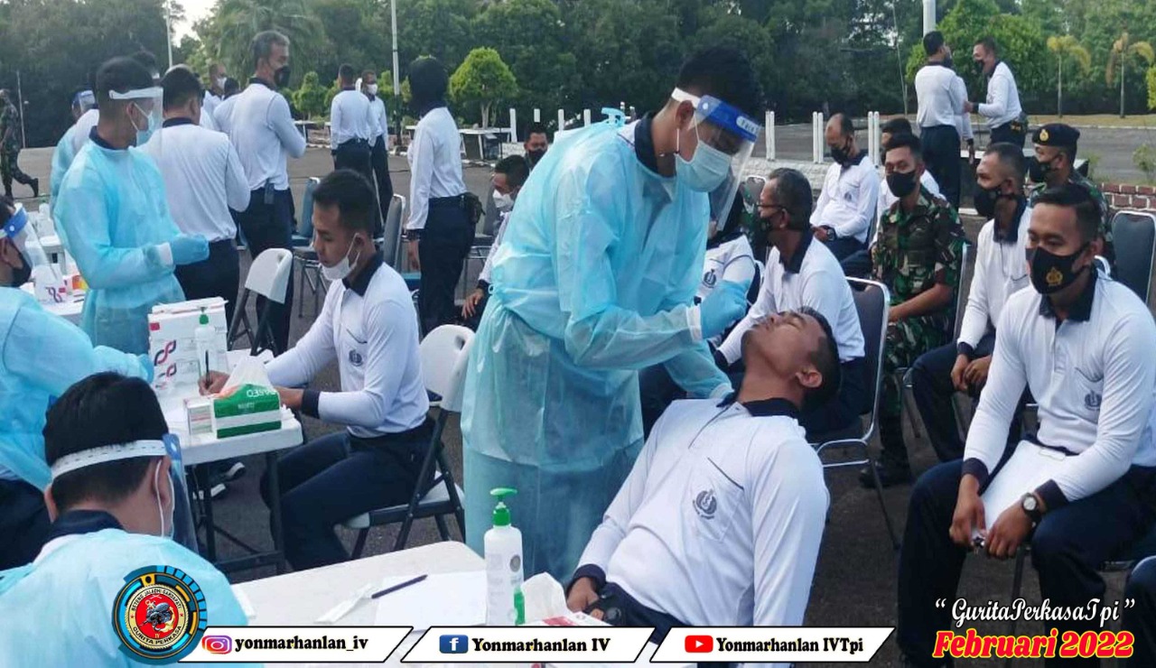 Tanjungpinang, PW: Dalam rangka menindak Lanjuti perintah langsung dari Kepala Staf Angkatan Laut (KASAL) Laksamana TNI Yudo Margono, S.E., M.M. dalam upaya pencegehan penyebaran virus Covid I9 Varian baru, dilingkungan TNI Angkatan Laut, supaya tidak ada yang terpapar covid dan juga mencegah penyebaran varian baru. Prajurit Yonmarhanlan IV Laksanakan Swab Antigen massal Di Lapangan Apel Lantamal IV, Batu Hitam, Selasa (22/02/2022).