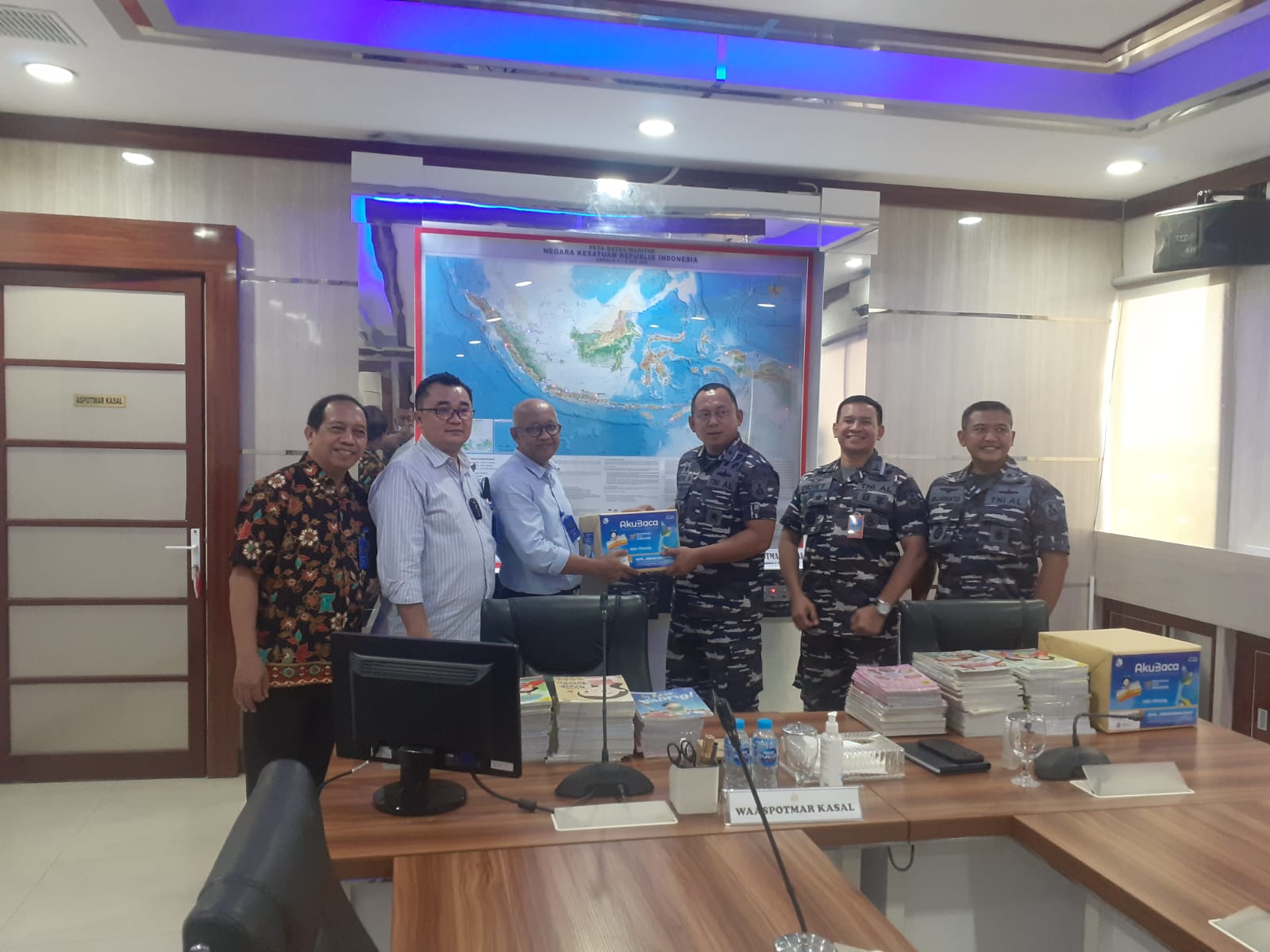 Jakarta, 16 Agustus 2022,– TNI Angkatan Laut menerima bantuan berupa buku-buku dari Gramedia untuk disalurkan kepada anak-anak yang berada di pulau-pulau terluar Indonesia. Serah terima dilaksanakan secara simbolis dari General Manager Cooporate Gramedia, Bapak Bambang Nuryanto kepada Asisten Potensi Maritim (Aspotmar) Kasal Mayjen TNI (Mar) Nur Alamsyah yang diwakili Waaspotmar Kasal Laksma TNI Rudhi Aviantara di Rupat Spotmaral, Mabesal Cilangkap Jakarta Timur. Senin (15/08)