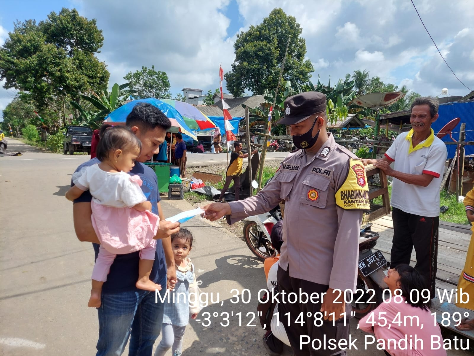 pulang pisau – Bhabinkamtibmas Polsek Pandih Batu, Polres Pulang Pisau, Polda Kalteng, Pandemi Covid – 19 belum berakhir. Untuk itu terus melakukan sosialisasi pencegahan penyebaran Covid – 19 kepada masyarakat.di wilayah Kecamatan Pandih Batu kabupaten pulang pisau Provinsi Kalimantan Tengah, Minggu (30/10/2022)