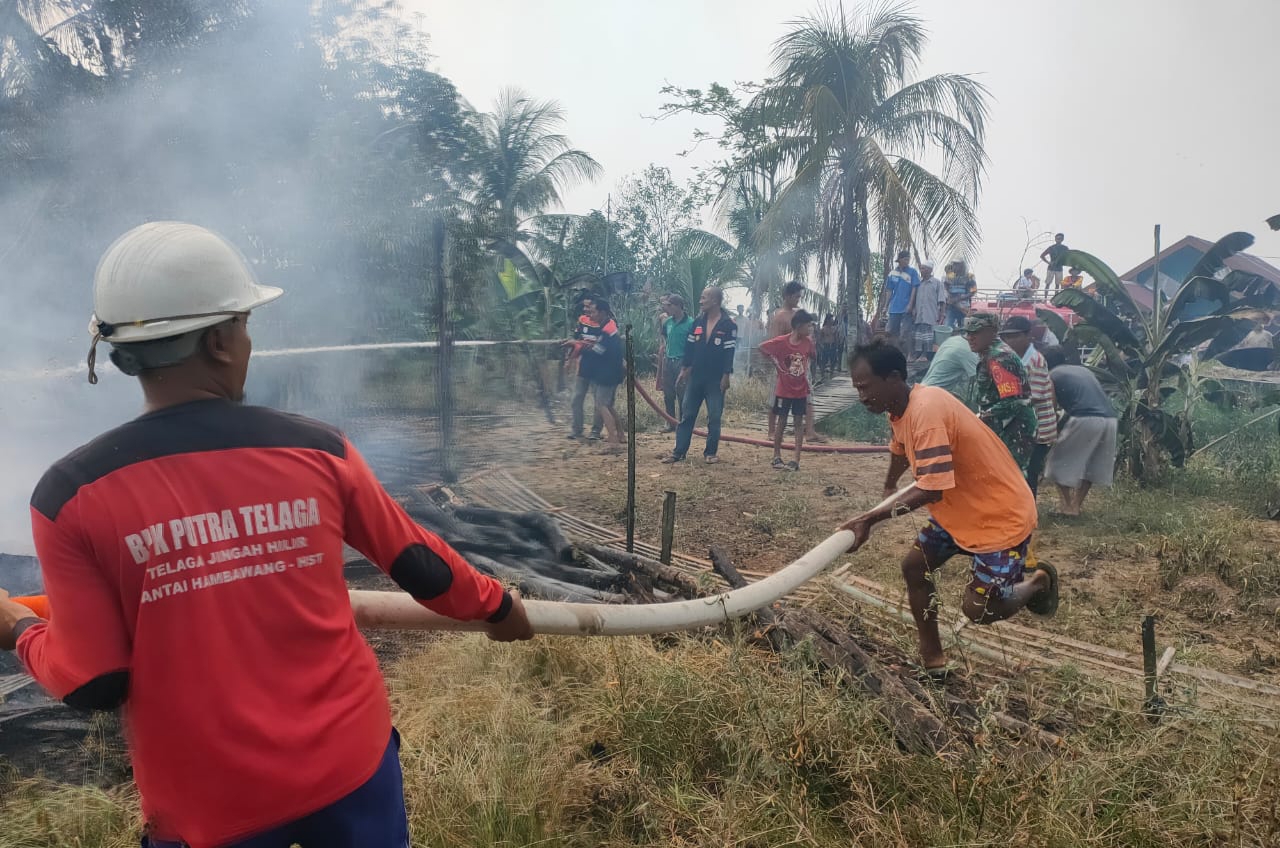 Api dapat dipadamkan pada pukul 14.20 wita oleh BPK Pabian dan BPK Putra Telaga dibantu warga memadamkan kebakaran,
