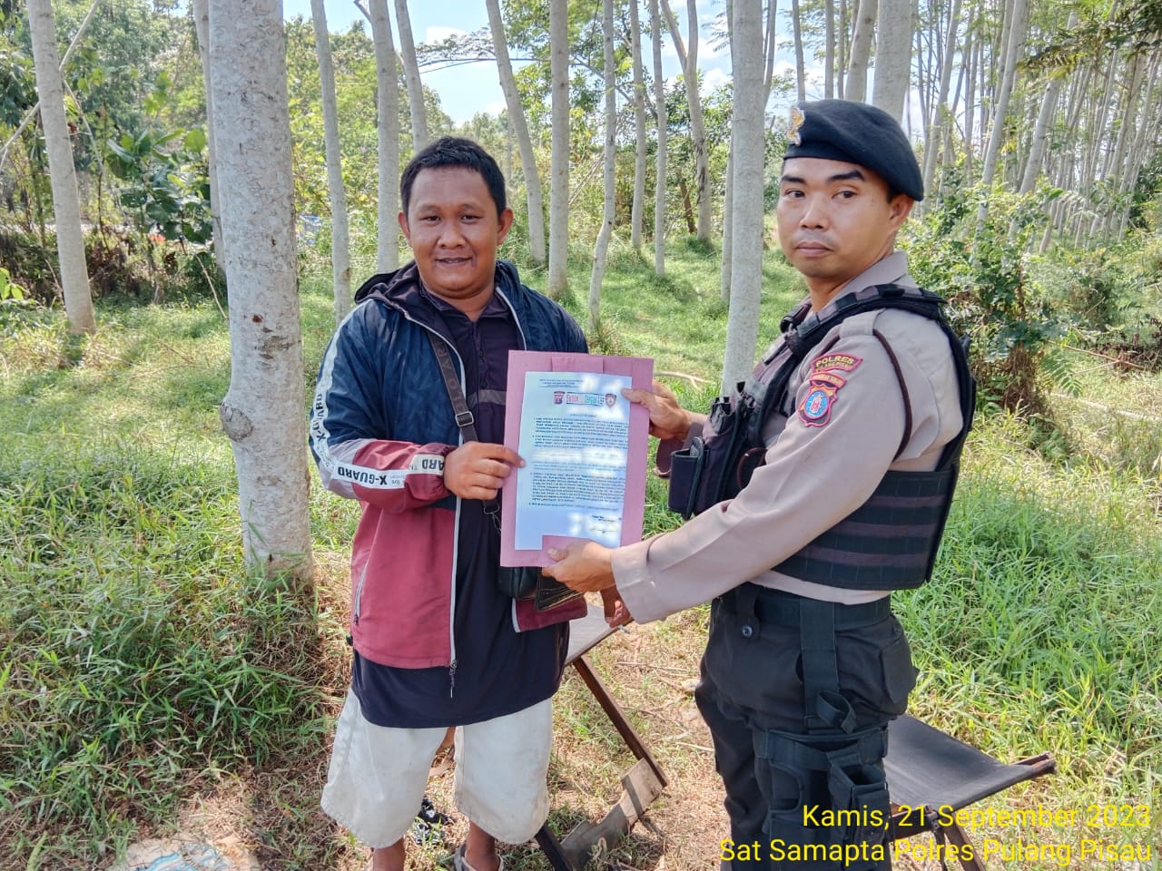 Polres Pulang Pisau – Personil Satsamapta Polres Pulang Pisau ( Pulpis), Dalam aksi mencegah Kebakaran Hutan dan lahan gencar laksanakan Patroli Dialogis dan sosialisasi serta memberi himbauan kepada masyarakat tentang larangan dan bahaya membakar hutan dan lahan pada Kamis (21/09/2023) siang