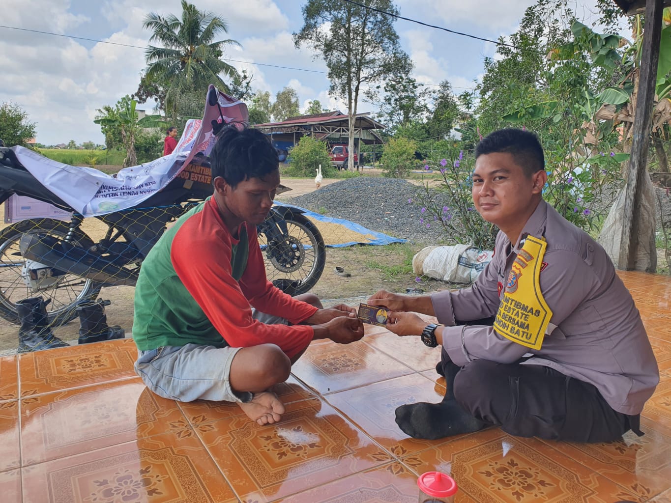 Polres Pulang Pisau – Sebagai upaya agar masyarakat dapat cepat terlayani apabila mendapat permasalahan yang membutuhkan solusi, Bhabinkamtibmas Food Estate Desa Karya Bersama Polsek Pandih Batu Polres Pulang Pisau Polda Kalteng Bripda I Putu Ardika Saputra membagikan kartu nama yang tertera nomor telephone sehingga masyarakat dapat segera menghubungi nomor telepon tersebut apabila masyarakat membutuhkan bantuan dari Polri melalui Bhabinkamtibmas. Selasa (26/09/2023) siang.