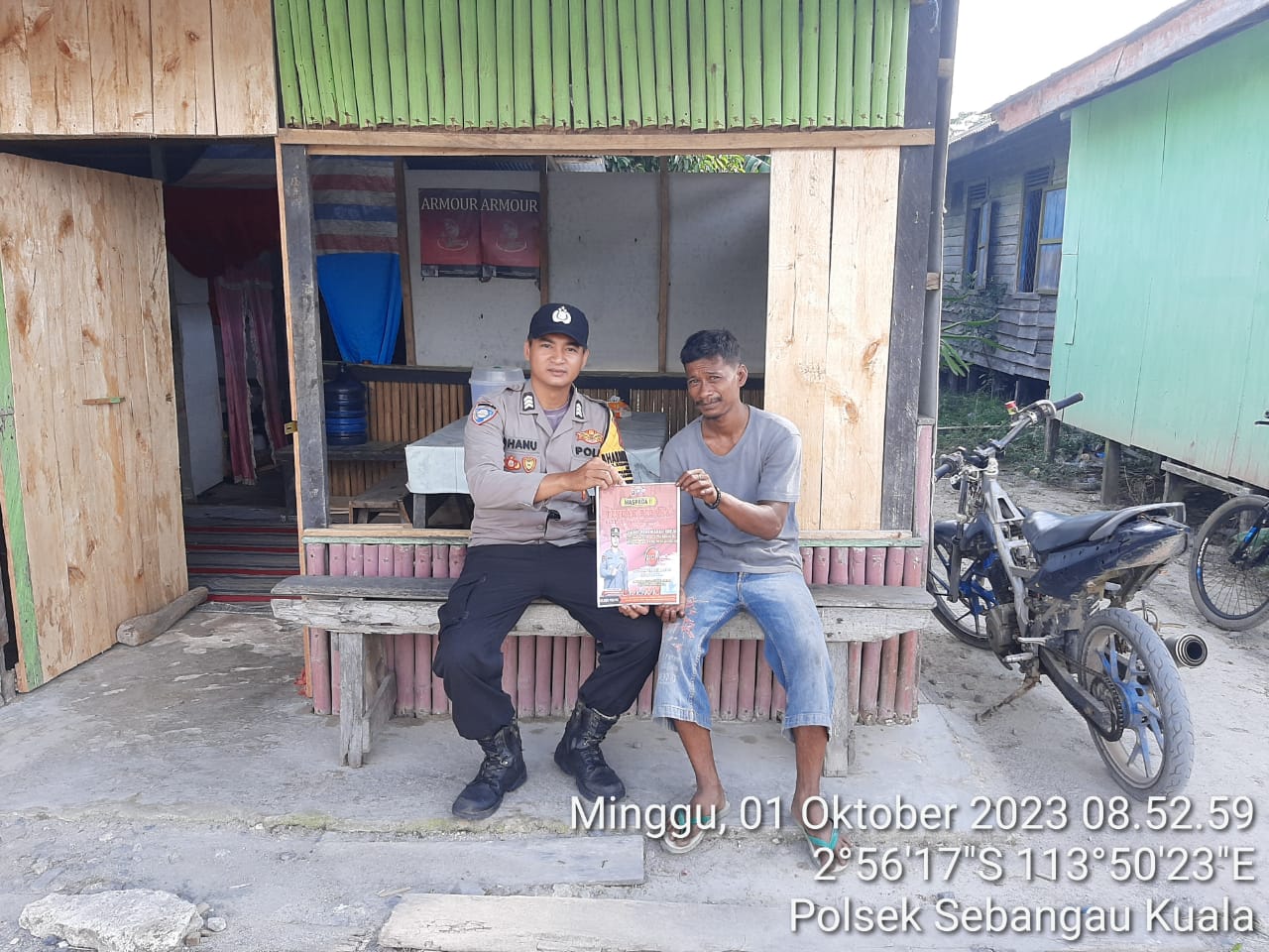 Polres Pulang Pisau – Personil Polsek Sebangau Kuala, Polres Pulang Pisau, Polda Kalteng, melakukan sosialisasi bahaya Tindak Pidana Perdagangan orang (TPPO) kepada warga masyarakat di wilayah Kecamatan Sebangau Kuala kabupaten pulang pisau Provinsi Kalimantan Tengah,Minggu (01/10/2023)