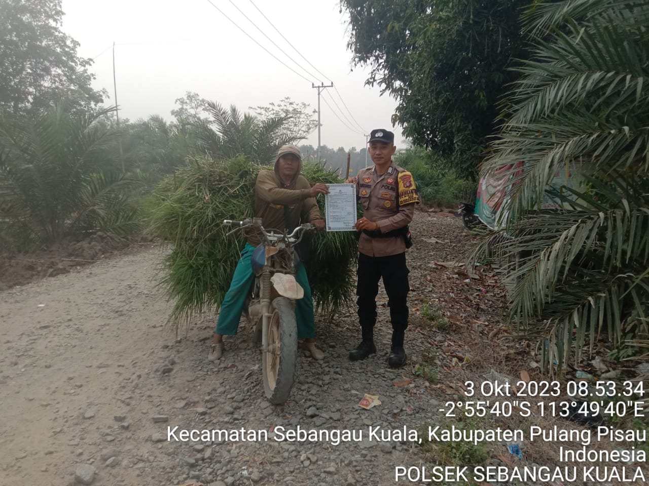Kapolres Pulang Pisau AKBP Mada Ramadita., S.I.K melalui Kapolsek Sebangau Kuala Ipda Suripno Mulyono mengatakan Antisipasi Karhutla, Ini yang Dilakukan oleh bhabinkamtibmas BRIPKA MARKURIUS beserta anggota lainnya saat ini mulai gencar melakukan himbauan Karhutla kepada warga untuk mencegah terjadi kebakaran lahan dan hutan.
