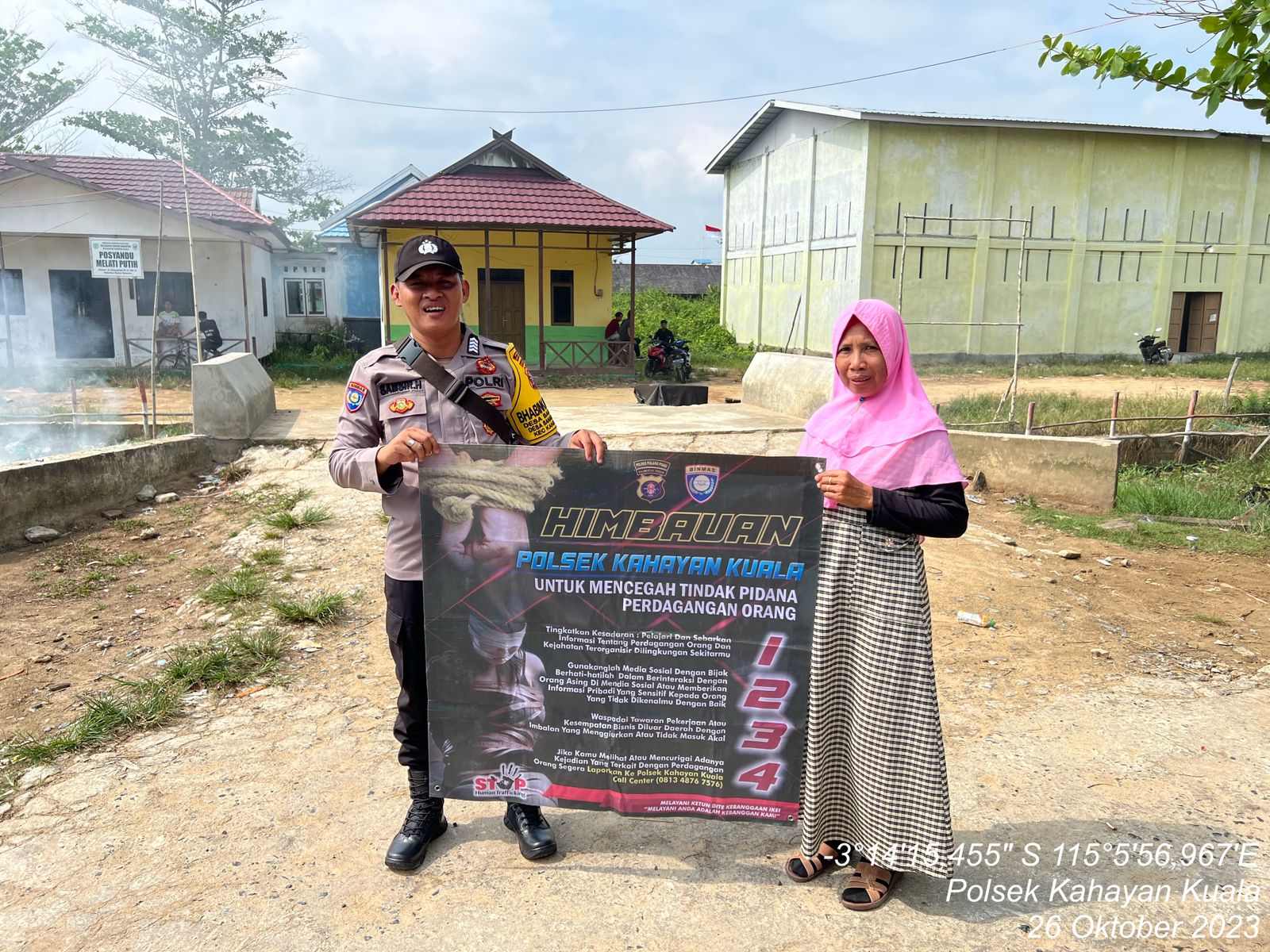 Kapolres Pulang Pisau, AKBP Mada Ramadita., S.I.K melalui Kapolsek Kahayan Kuala Iptu Gendut Prasetyo ,S.H, menyampaikan beberapa himbauan Tentang Tindak Pidana Perdagangan Orang ( TPPO ) dan pesan – pesan kamtibmas Kepada masyarakat Agar waspada dengan Tindak Pidana Perdagangan Orang (TPPO), oleh karena itu kami menghimbau untuk bersama sama dengan Pemerintahan Desa, RT/RW, Tokoh agama dan Warga masyarakat