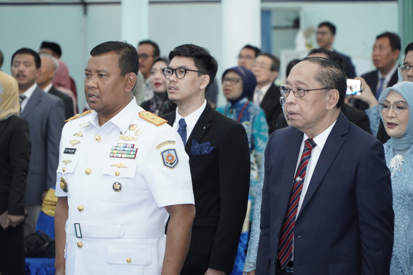 Surabaya, 25 Oktober 2023, —– Wakil Komandan (Wadan) Kodiklatal Laksma TNI Eko Wahjono menghadiri Rapat Senat Terbuka Pengukuhan Guru Besar Universitas Hang Tuah kepada lima orang Profesor, bertempat di Graha Samudera Ganesa Universitas Hang Tuah (UHT) Surabaya, Jl. Arief Rahman Hakim, Keputih, Kec. Sukolilo, Kota Surabaya. (25/10/2023). Adapun kelima Profesor yang dikukuhkan sebagai Guru Besar UHT Surabaya yaitu, *Prof. Dr. Soedarsono, dr., Sp.P(K)., Prof. Dr. Syamsulina Revianti, drg., M.Kes., PBO., Prof. Dr. Drs. Viv Djanat Prasita, M.App.Sc., Prof. Dr. Drs, Agus Subianto, M.Si., dan Prof. Dr. Bagiyo Suwasono, S.T., M.T.,…