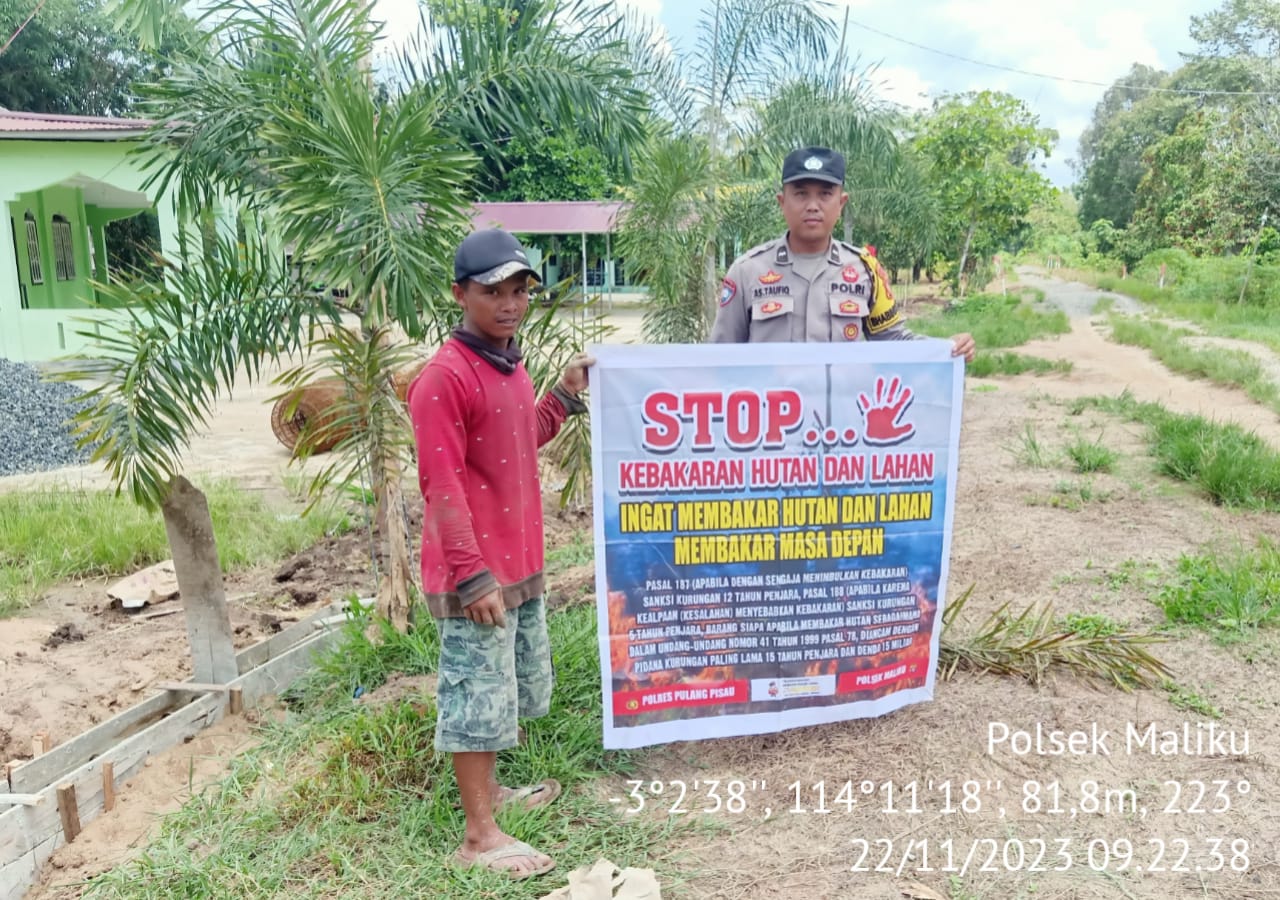 Pulang Pisau – Tentu Tak seorang pun yang menginginkan Kebakaran Hutan dan lahan, karena akibatnya sangat berbahaya, baik untuk lingkungan, kesehatan bahkan mempengaruhi perekonomian, seperti yang terjadi di tahun 2015 silam, untuk itu Bhabinkamtibmas Polsek Maliku, Polres Pulang Pisau, Polda Kalteng Aipda Taufiq melaksanakan sambang dan sosialisasi pencegahan Karhutla, sebagai upaya pencegahan terjadinya karhutla, Rabu (22/11/2023).