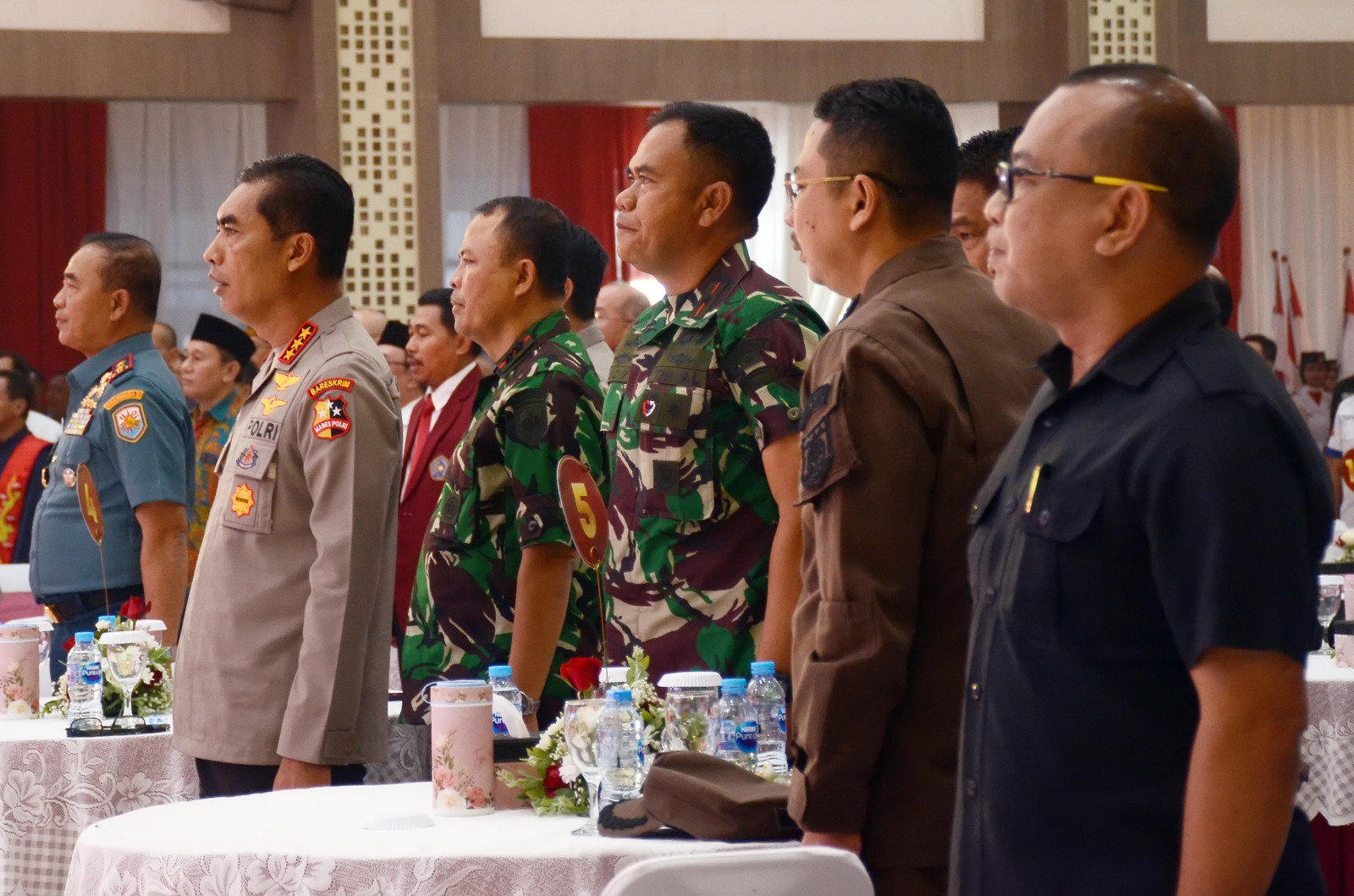 TNI AL, Dispen Kormar (Surabaya) PW : Komandan Pasmar 2 Brigjen TNI (Mar) Y. Rudy Sulistyanto didampingi Asops Danpasmar 2 Kolonel Marinir Arip Supriyadi dan Asintel Danpasmar 2 Letkol Marinir Alim Firdaus menghadiri Deklarasi Pemilu Damai di Gedung Mahameru, Mapolda Jawa Timur, Jl. A. Yani No. 116 Surabaya. Kamis (28/12/2023).
