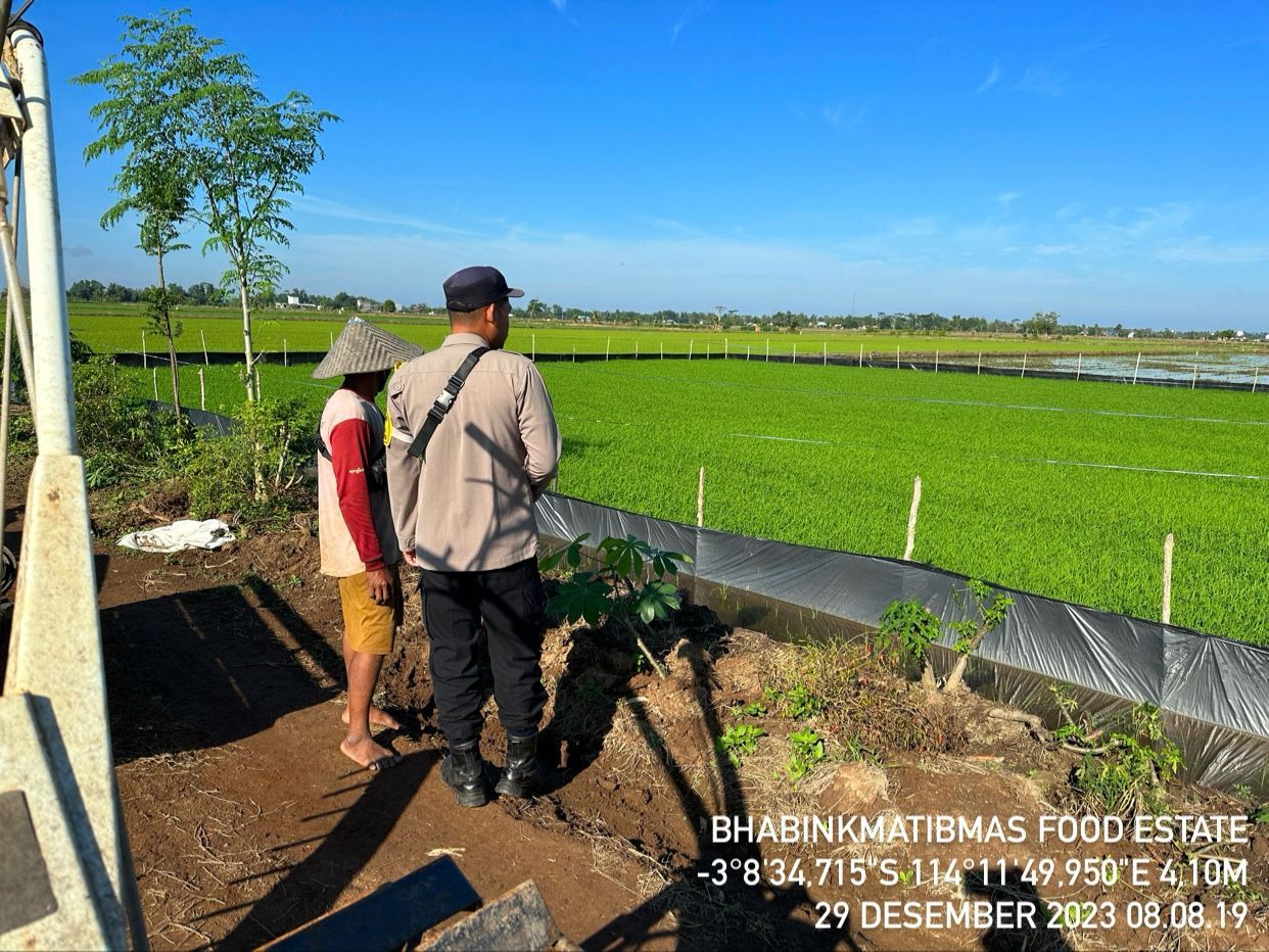 Polres pulang pisau Anggota Bhabinkamtibmas Food estate Polsek Pandih Batu, Polres Pulang Pisau, Polda Kalteng, Bripda Achmad Fauzi dan rekan lainnya melaksanakan kegiatan Sambang ke masyarakat warga desa Sanggang yang berada di sawah dan berdialog dengan petani dan menghimbau masyarakat desa Sanggang agar tidak membakar hutan dan lahan Dalam kesempatan tersebut Personel Bhabinkamtibmas juga menyampaikan masalah keamanan di desa Sanggang agar selalu tetap aman dan kondusif, Jumat (29/12/2023).