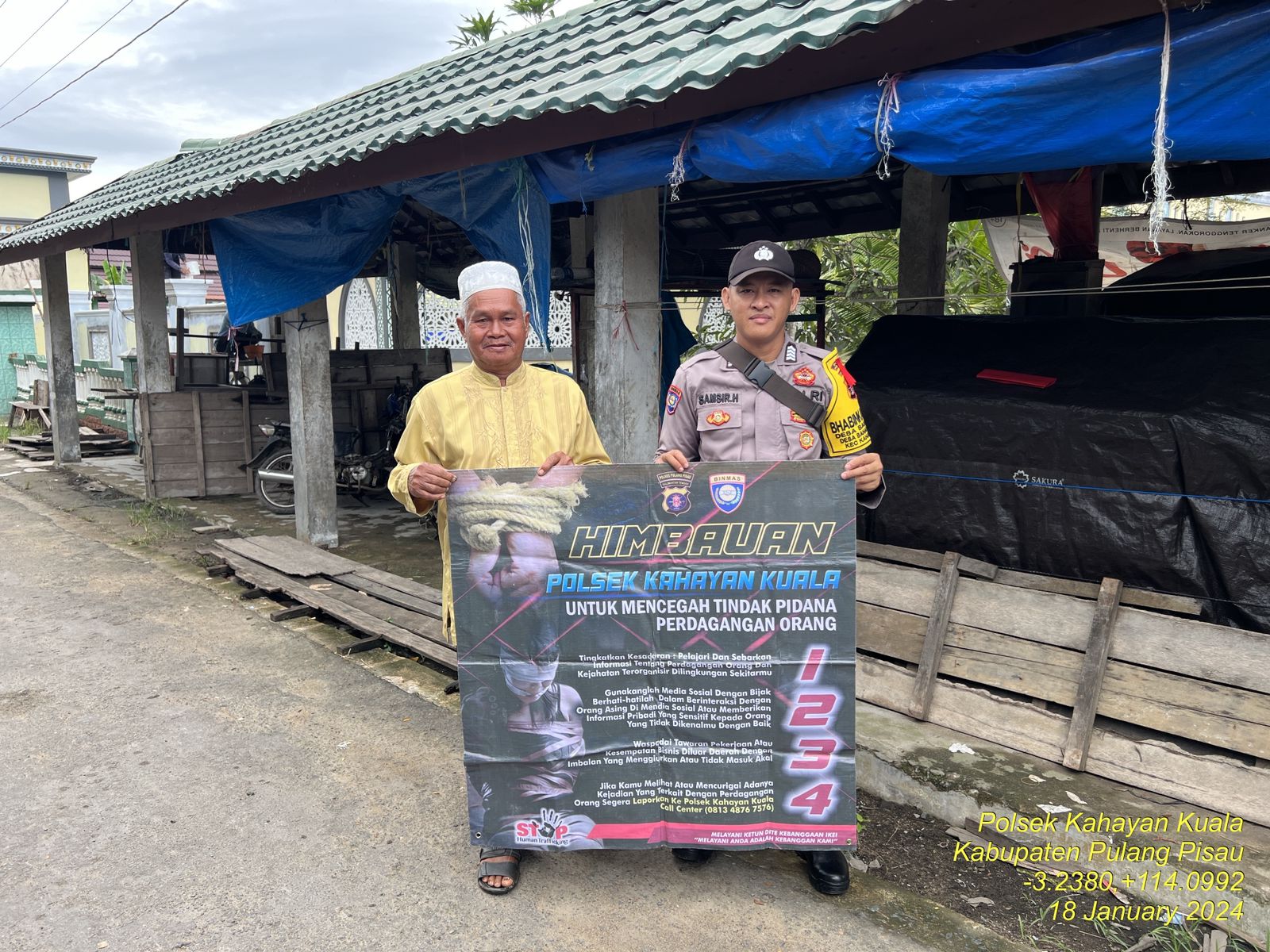 Kapolres Pulang Pisau, AKBP Mada Ramadita., S.I.K melalui Kapolsek Kahayan Kuala Akp. Gendut Prasetyo ,S.H, menyampaikan beberapa himbauan Tentang Tindak Pidana Perdagangan Orang ( TPPO ) dan pesan – pesan kamtibmas Kepada masyarakat Agar waspada dengan Tindak Pidana Perdagangan Orang (TPPO), oleh karena itu kami menghimbau untuk bersama sama dengan Pemerintahan Desa, RT/RW, Tokoh agama dan Warga masyarakat