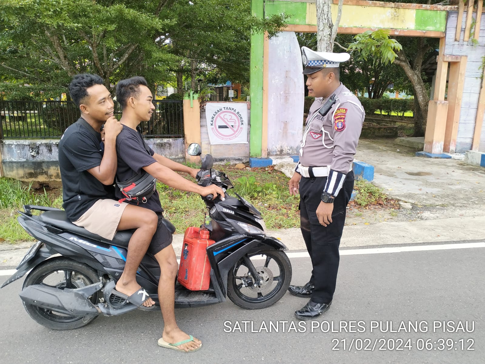 Lagi dan lagi Personel Satlantas Polres Pulang Pisau sampaikan Teguran Simpatik Kepada pengguna sepeda motor Yang Tidak Menggunakan Helm