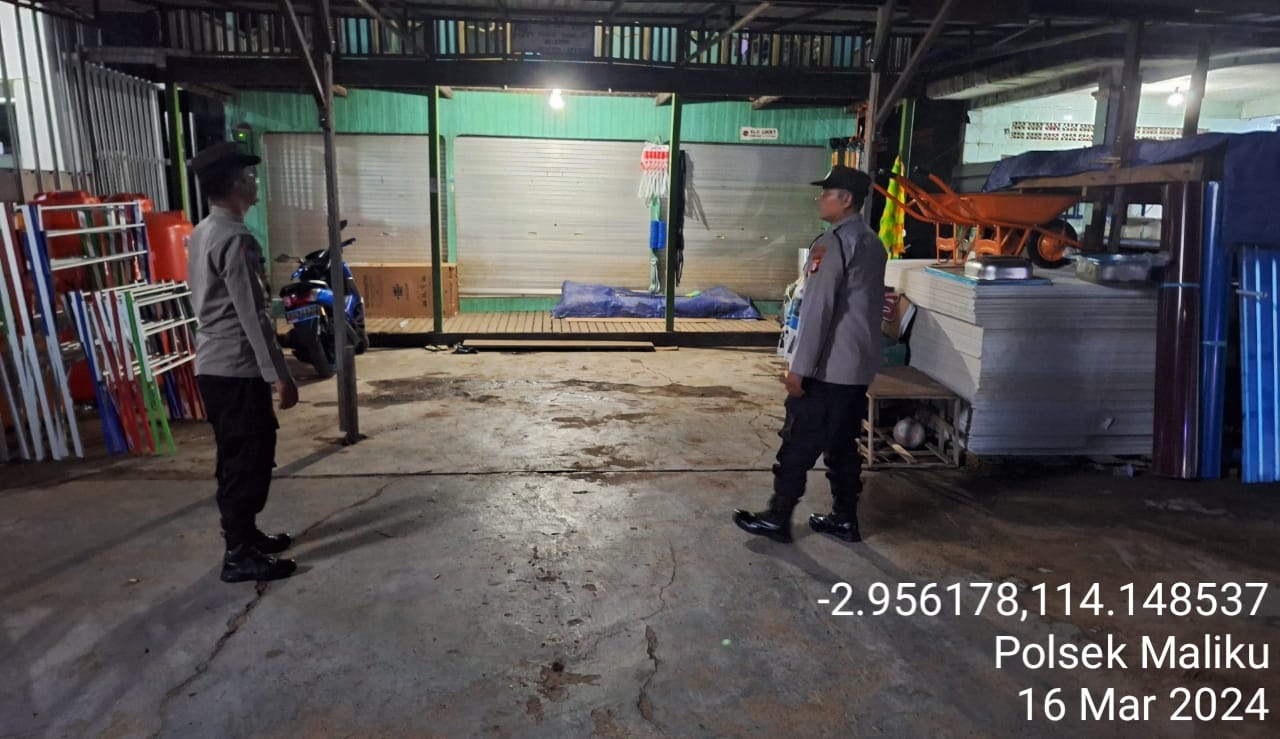 ” Kegiatan Patroli di pimpin Kanit SPKT 1 Aiptu Lukman, sasaran Patroli malam ini adalah Komplek pertokoan di Desa Maliku Baru Kec. Maliku