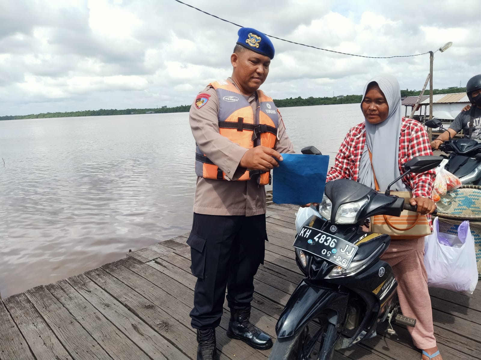Anggota Satpolairud Polres Pulang Pisau juga menyampaikan kepada masyarakat yang tinggal di bantaran Das Kahayan terkait Endemi Covid-19 agar masyarakat tetap waspada dan selalu mentaati protokol kesehatan seperti yang sudah di anjurkan oleh pemerintah, Senin (25/3/2024) pagi.