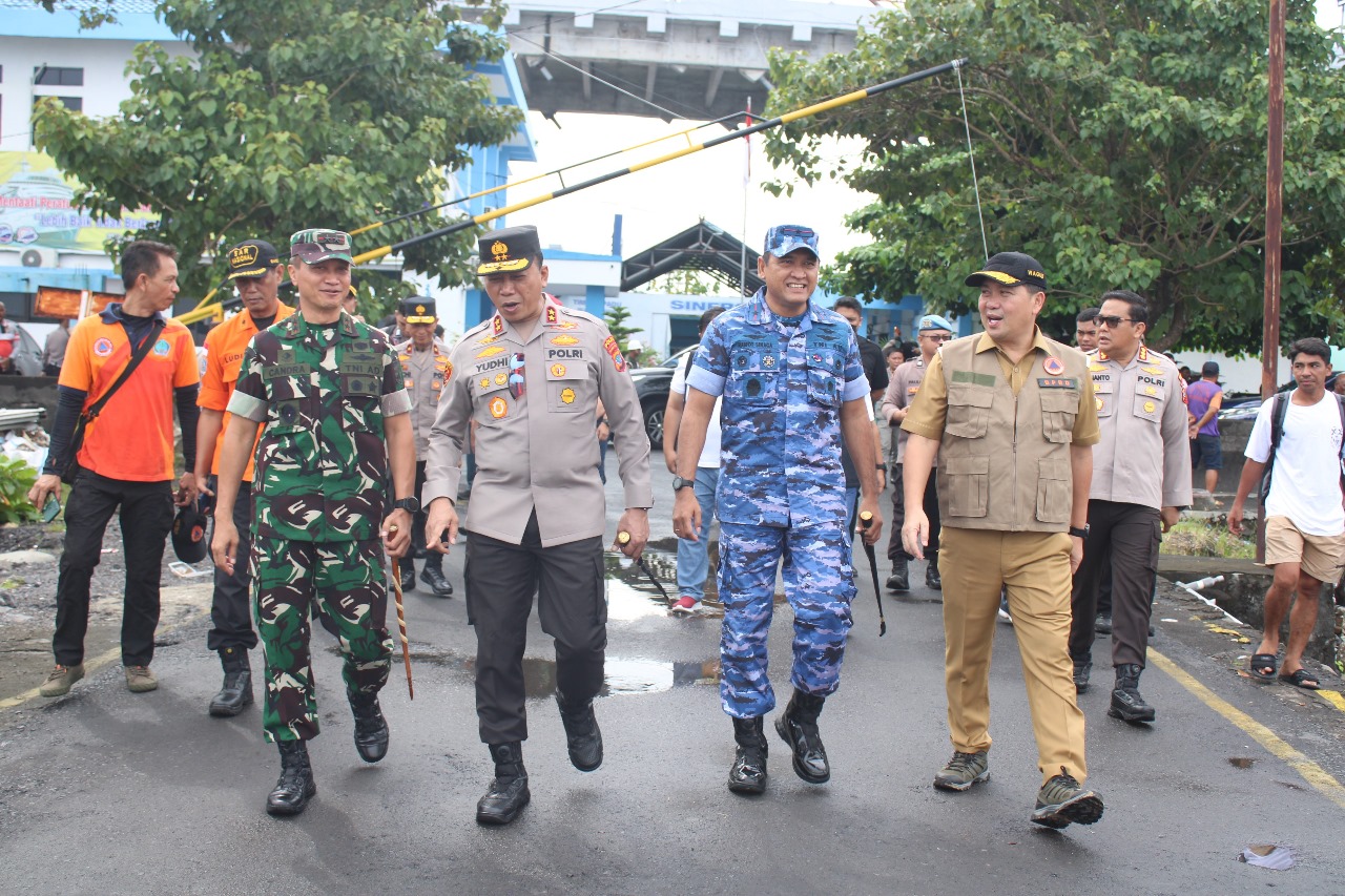 MANADO, Mendampingi Wakil Gubernur Sulawesi Utara Bapak Drs. Steven Kandouw, Danlanud Sam Ratulangi Marsma TNI Ramot C.P. Sinaga, S.E., M.Han., beserta Forkopimda Sulawesi Utara meninjau lokasi terdampak bencana erupsi Gunung Ruang di Pulau Tagulandang, Kabupaten Kepulauan Sitaro dari Pelabuhan Manado. Selasa (23/4/2024). Menggunakan KN SAR Bima Sena 228 Basarnas, Forkopimda Sulawesi Utara bertolak menuju Tagulandang untuk meninjau posko terpadu, lokasi terdampak bencana erupsi Gunung Ruang sekaligus menyerahkan bantuan bagi masyarakat. Rencananya selama disana akan memantau fasilitas publik maupun rumah warga yang terdampak bencana erupsi Gunung Ruang. Pasca erupsi Gunung Ruang…