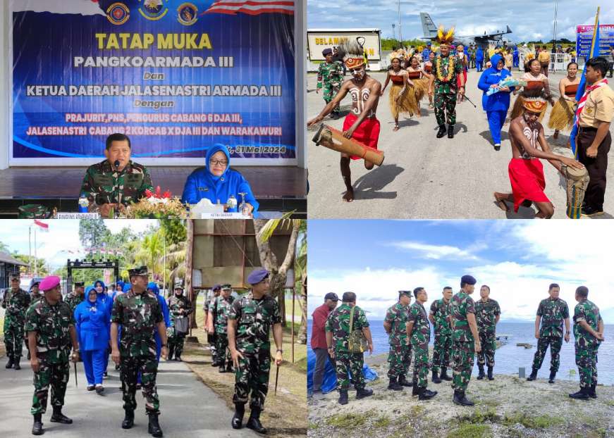 Biak PW- TNI AL/ Koarmada III. Bertempat di Gedung Hang Tuah Mako Lanal Biak Papua, seluruh Prajurit, PNS dan Keluarga besar Guskamla Koarmada III dan Lanal Biak menerima pengarahan Panglima Komando Armada III (Pangkoarmada III) Laksamana Muda TNI Hersan, S.H., M.Si.,M.Tr.Opsla., yang didampingi Ketua Daerah Jalasenastri Armada III, Ny. Dita Hersan. Jumat (31/05/24).