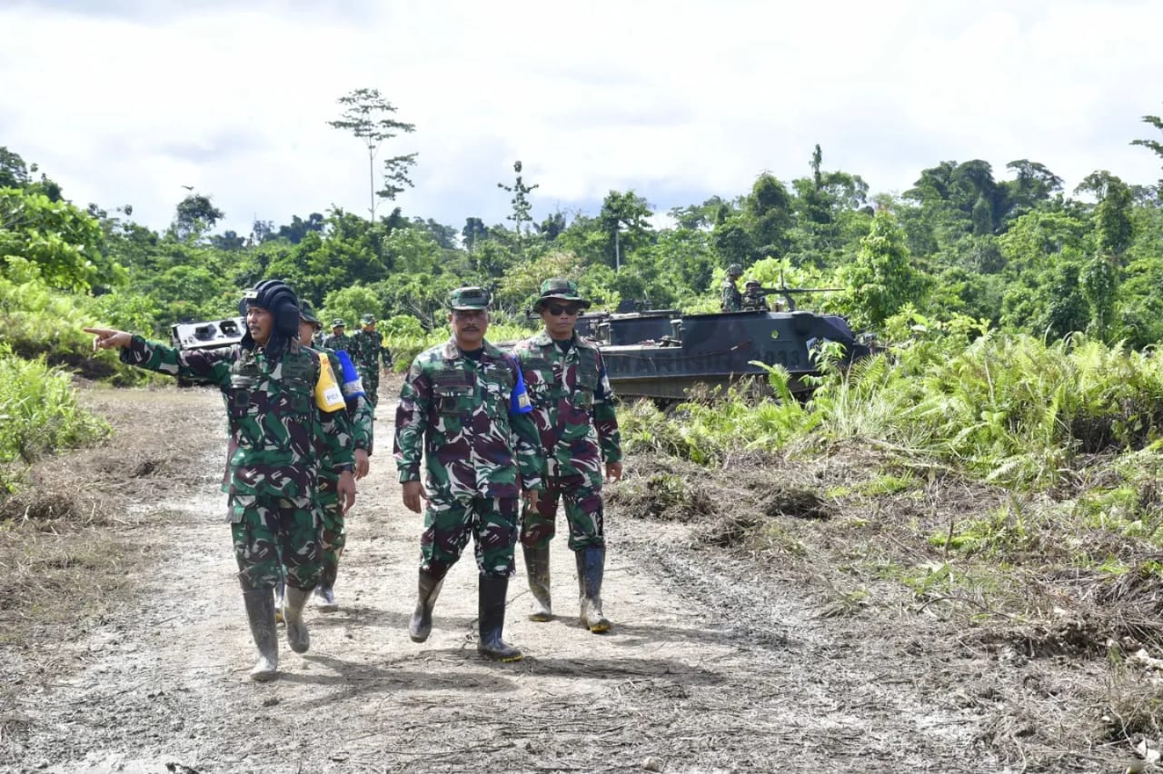 Sorong. Komandan Pasmar 3 Brigjen TNI (Mar) Sugianto, S.Sos., M.M., M.Tr.Opsla., meninjau langsung Latihan Satuan Dasar (LSD) II dan Latihan Satuan Lanjutan (LSL) I Triwulan (TW) II tahun 2024 yang bertempat di daerah latihan Marinir Segun, Distrik Moisegen, Kabupaten Sorong, Papua Barat Daya. Kamis (13/06/2024).