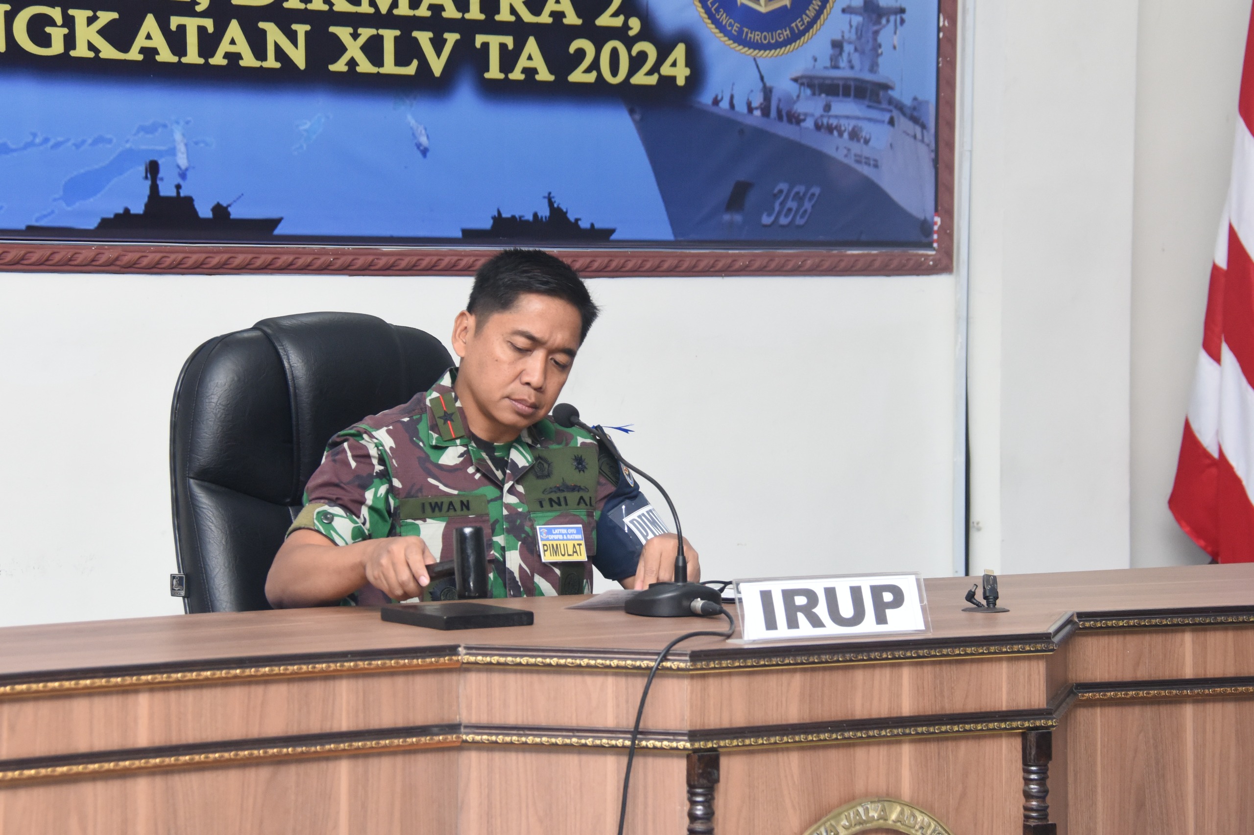 Komandan Kodikopsla (Dankodikopsla) Kodiklatal Laksma TNI Muhammad Iwan Kusumah memimpin Upacara Pembukaan Latihan Praktek (Lattek) Olah Yudha (OYU) Operasi Amfibi (Opsfib) dan Operasi Pendaratan Administrasi (Opsratmin) Pendidikan Lanjutan Perwira (Diklapa) Angkatan 33, Dikmatra – 2, Dikaplikasi – 2 dan Dik STTAL Angkatan 45 TA. 2024, bertempat di Kelas Gabungan Pusdiklapa Kodikopsla Kodiklatal, Bumimoro Surabaya. Senin (29/07/2024).