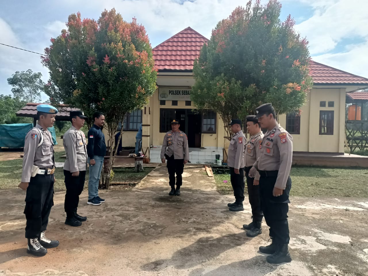 Polsek Sebangau Kuala Polres Pulang Pisau Polda Kalteng melaksanakan Kegiatan serah terima piket penjagaan mako polsek sebangau kuala di halaman Mako polsek Sebangau Kuala.