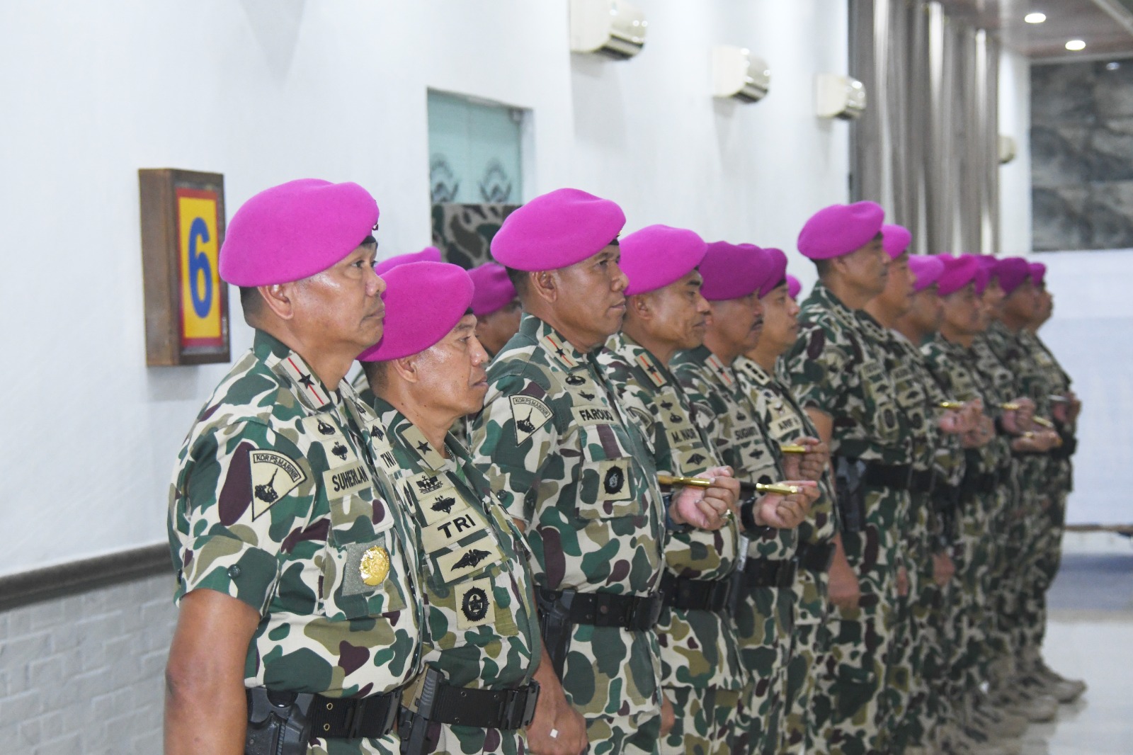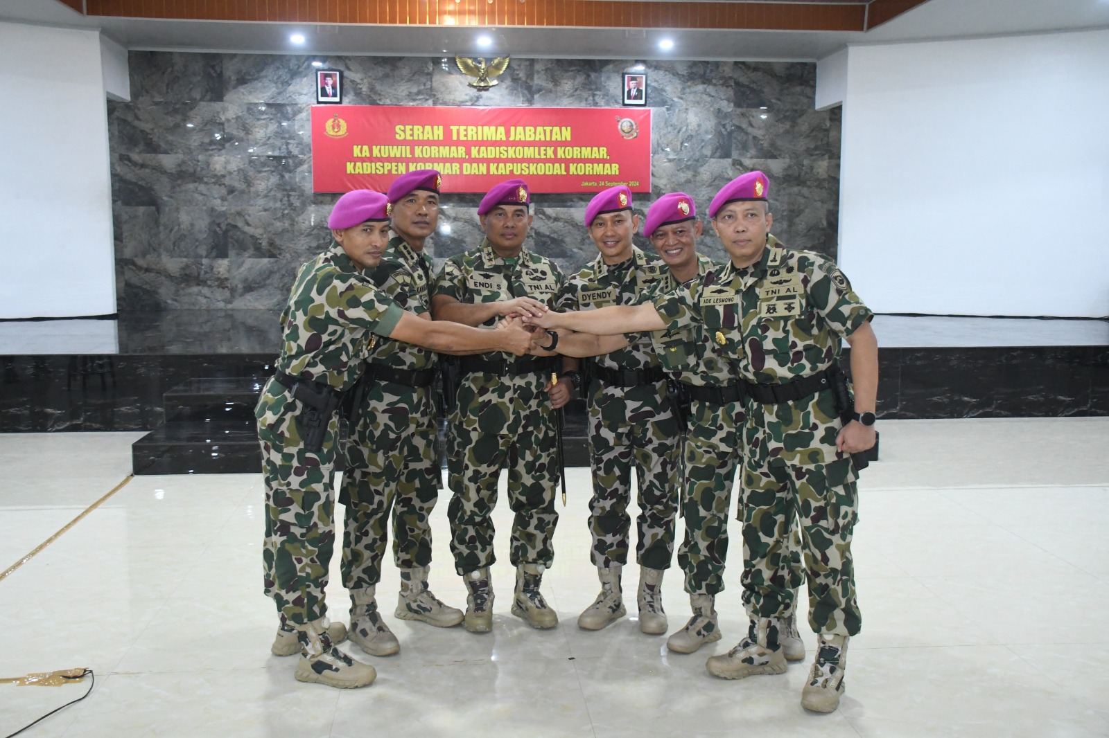 Jakarta, PW: TNI AL, Pasmar 1. Komandan Pasmar 1 (Danpasmar 1) Brigjen TNI (Mar) Umar Farouq, S.A.P,. CHRMP., M.Tr.Opsla., M.Han., mengikuti acara serah terima jabatan (Sertijab) empat pejabat di lingkungan Korps Marinir yang dipimpin oleh Komandan Korps Marinir (Dankormar) Mayjen TNI (Mar) Dr. Endi Supardi, S.E., M.M., M.Tr.Opsla., CHRMP., CRMP., di ruang rekreasi Yonif 6 Kesatrian Marinir Hartono Cilandak, Jakarta Selatan, Selasa (24/09/2024).