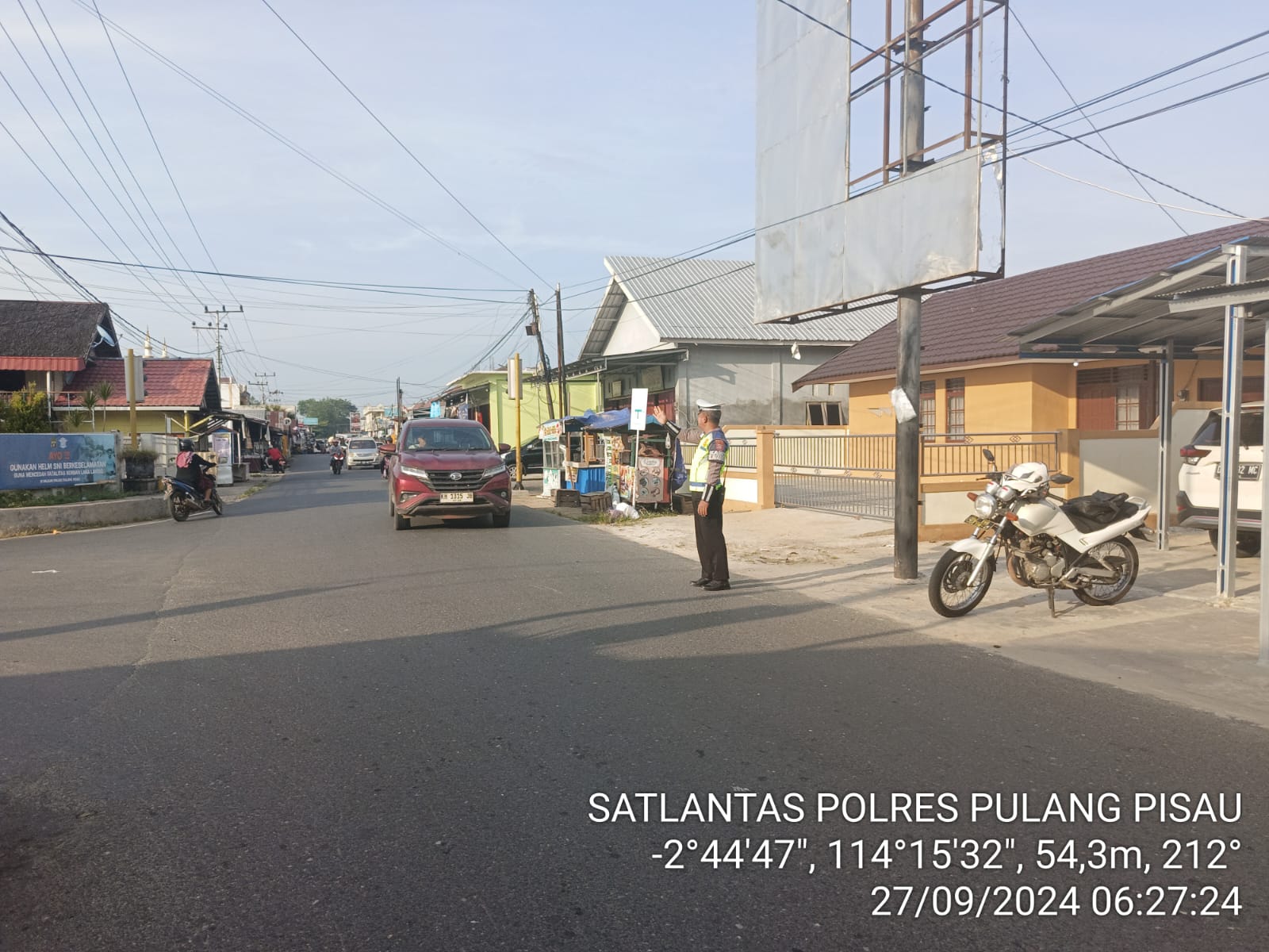 Polres Pulang Pisau – Satuan Lalu Lintas – personel dari Satlantas Polres Pulang Pisau melaksanakan kegiatan pengaturan lalu lintas pagi. Kegiatan tersebut dimulai pada pukul 06.00 WIB dan berlangsung hingga selesai, Jumat (27/9/2024).