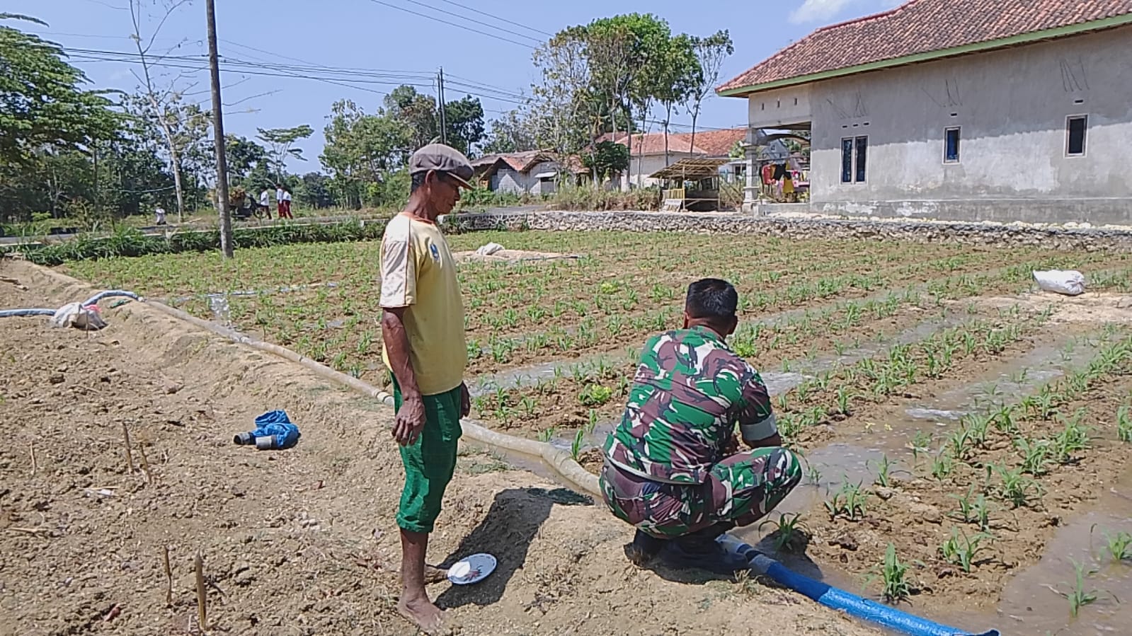 Pamekasan PW – Dalam upaya mendukung program ketahanan pangan nasional, Babinsa Desa Banban, Serda Akhmad Kusairi, dari Koramil 0826-09 Pakong, terjun langsung ke lapangan untuk membantu petani di wilayah binaannya. Ia terlihat mendampingi salah satu petani, Samsuri, dalam proses pengairan ladang jagung, Senin (21/10/2024).