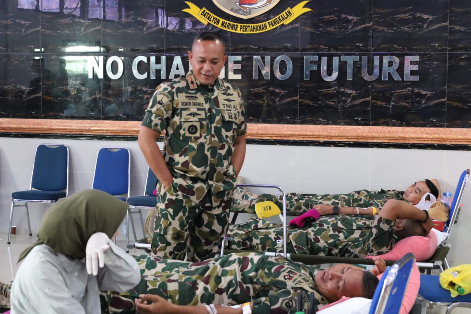 Medan, PW: TNI AL, Dispen Kormar, Pasmar 1 (Medan). Dalam rangka memperingati Hari Ulang Tahun (HUT) ke-79 Korps Marinir, Batalyon Marinir Pertahanan Pangkalan (Yonmarhanlan) I Belawan menggelar kegiatan Bakti Sosial Donor Darah di Mako Yonmarhanlan I, Jl. Serma Hanafiah No. 01 Belawan, Medan, Kamis (07/11/2024).