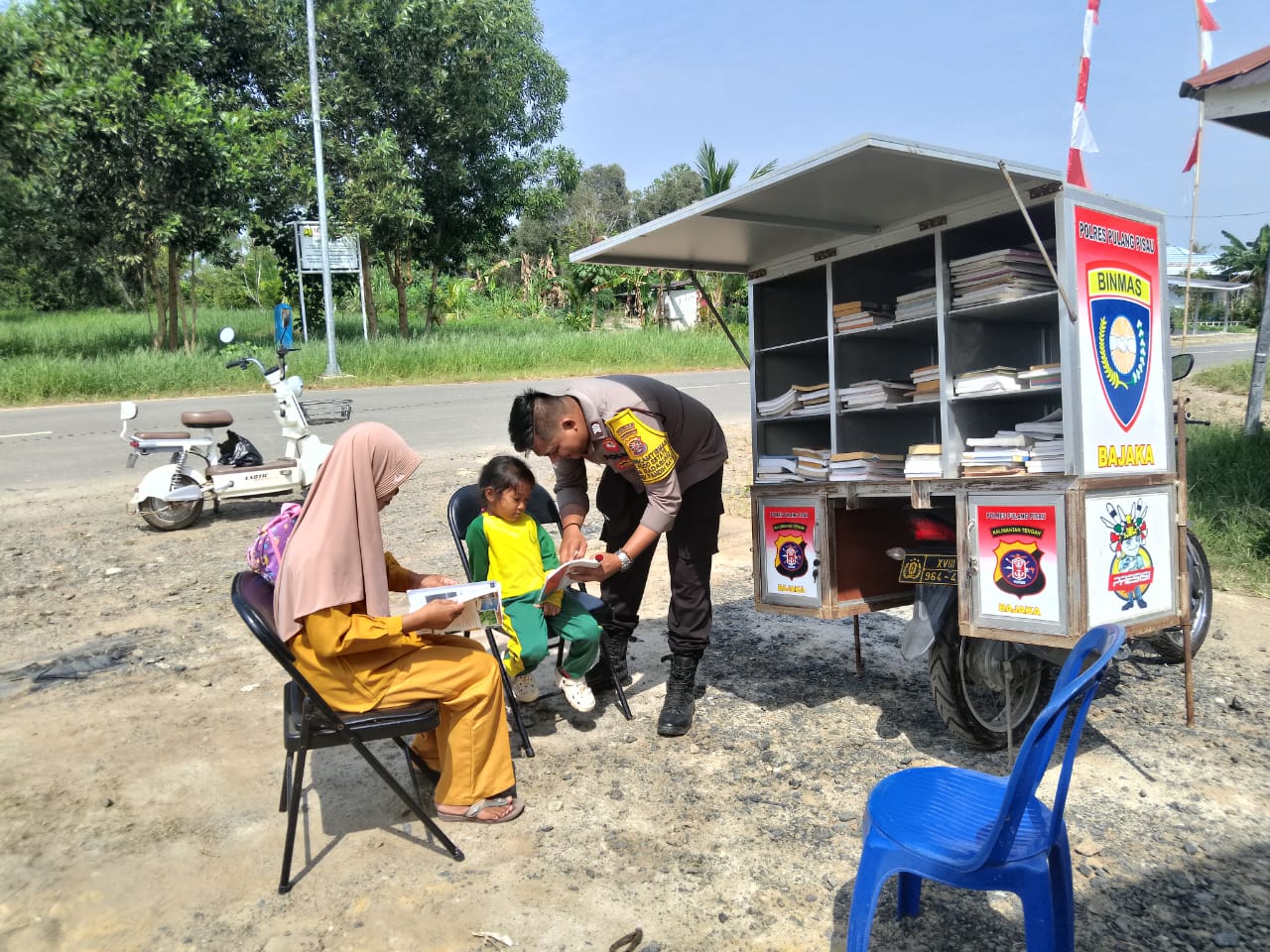 Seperti yang dilakukan oleh Bripka Sugiarto dan Brigpol Ardi.P hari ini, mereka berdua mengendarai sepeda motor Bajaka Presisi Polres Pulang Pisau yang membawa buku buku bacaan ke wilayah Food Estate, kemudian mengajak pelajar, warga yang sedang istirahat untuk membaca buku.