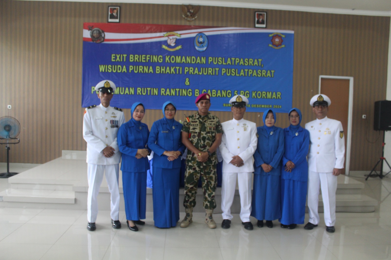 TNI AL, Dispen Kormar (Surabaya) PW : Komandan Puslatpasrat Letkol Marinir Irman Ali R Polanunu., M.Tr.Opsla.,CBEI., memimpin langsung upacara wisuda purna tugas prajuritnya di lapangan apel Puslatpasrat Ksatrian Marinir Ewa Panggalila Gunungsari Surabaya, Rabu (18/12/24).