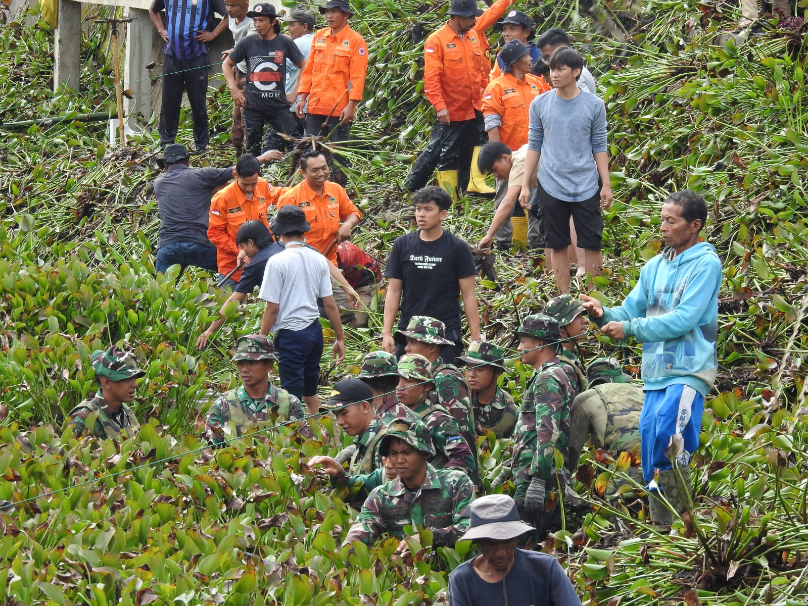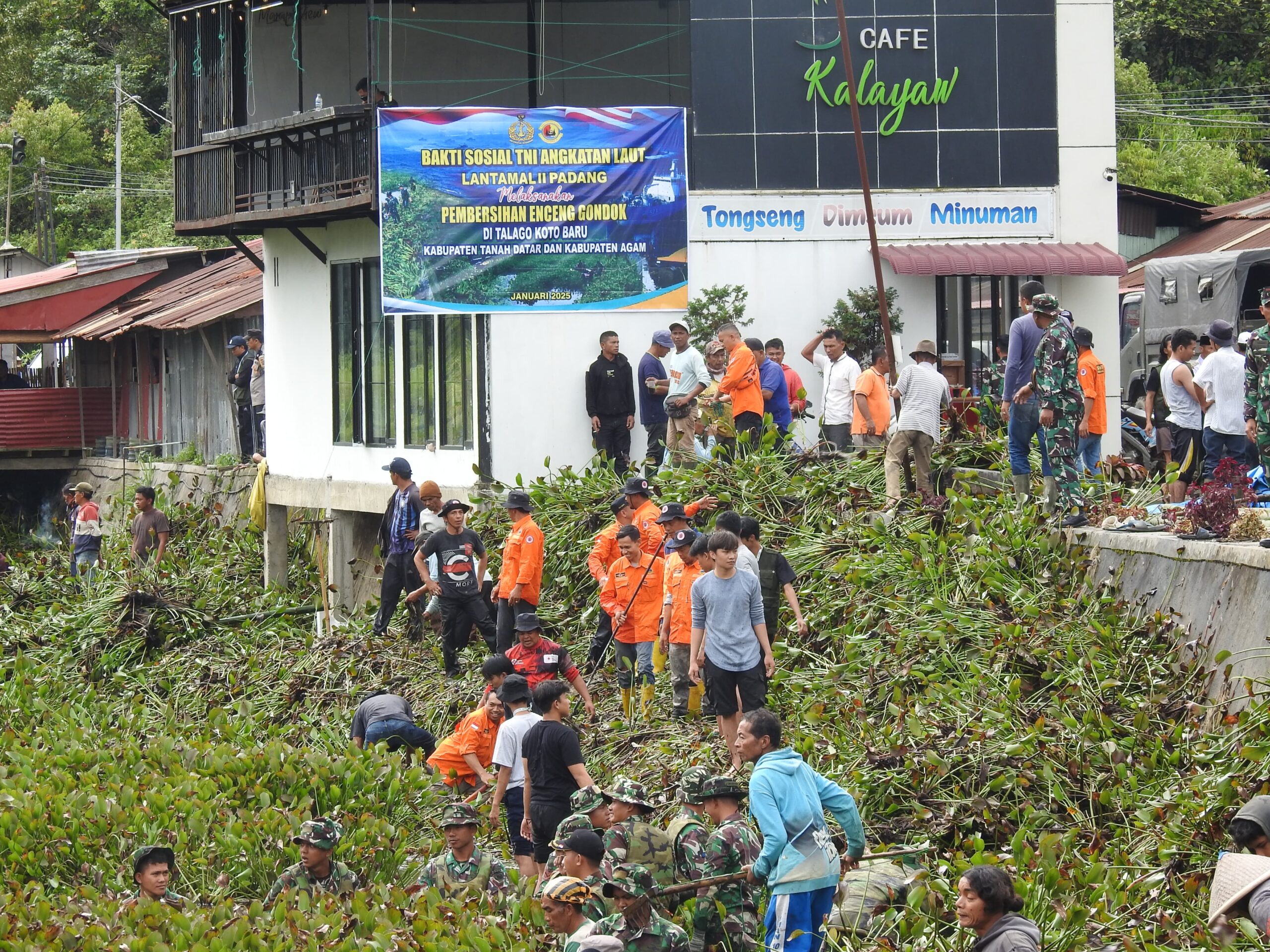 Kegiatan revitalisasi ini Prajurit Yonmarhanlan II Padang bersama Pemerintah Daerah Koto Baru , BPBD Kab. Tanah Datar dan masyarakat sekitar beserta Mahasiswa KKN melaksanakan pembersihan enceng gondok yang memenuhi Talago.