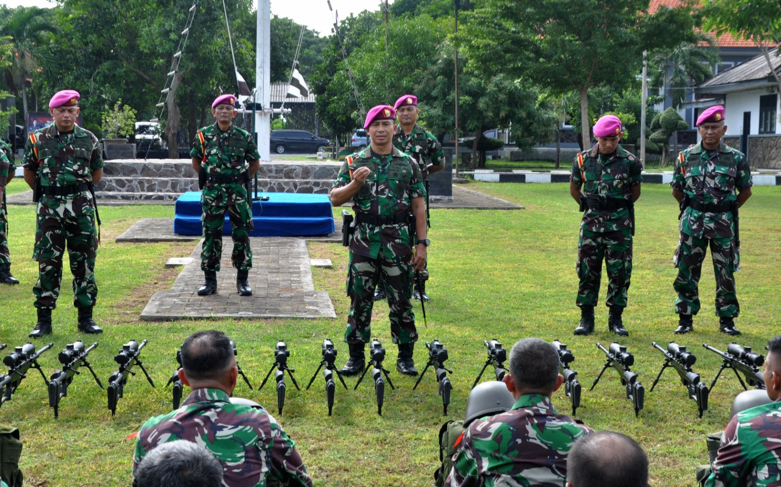 Dispen Kormar (Pasuruan) PW : Komandan Komando Latih Korps Marinir (Dankolatmar) Kolonel Marinir Dede Harsana, S.A.P., M.Han., membuka kepelatihan menembak Sniper dan AKM Kolatmar di Puslatpurmar 3 Grati Pasuruan, Senin (03/02/2025).