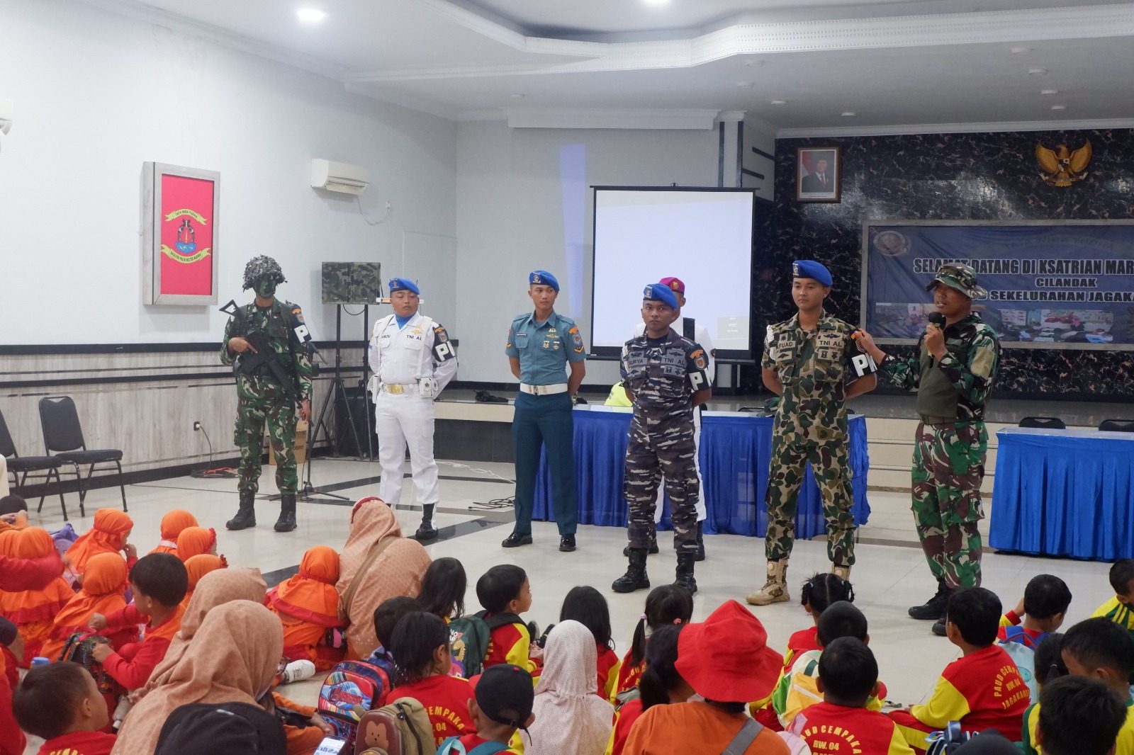 Jakarta, PW: TNI AL, Pasmar 1. Prajurit Batalyon Polisi Militer 1 Marinir (Yonpom 1 Mar) menerima kunjungan PAUD Kelurahan Jagakarsa yang terdiri dari Paud ABB, KBN 35, Paud Ar Rohman, Paud Cempaka, Paud Restu Ibu dan Paud Markisa bertempat di Kesatrian Marinir Hartono Cilandak, Jakarta Selatan, Rabu (05/02/2025).