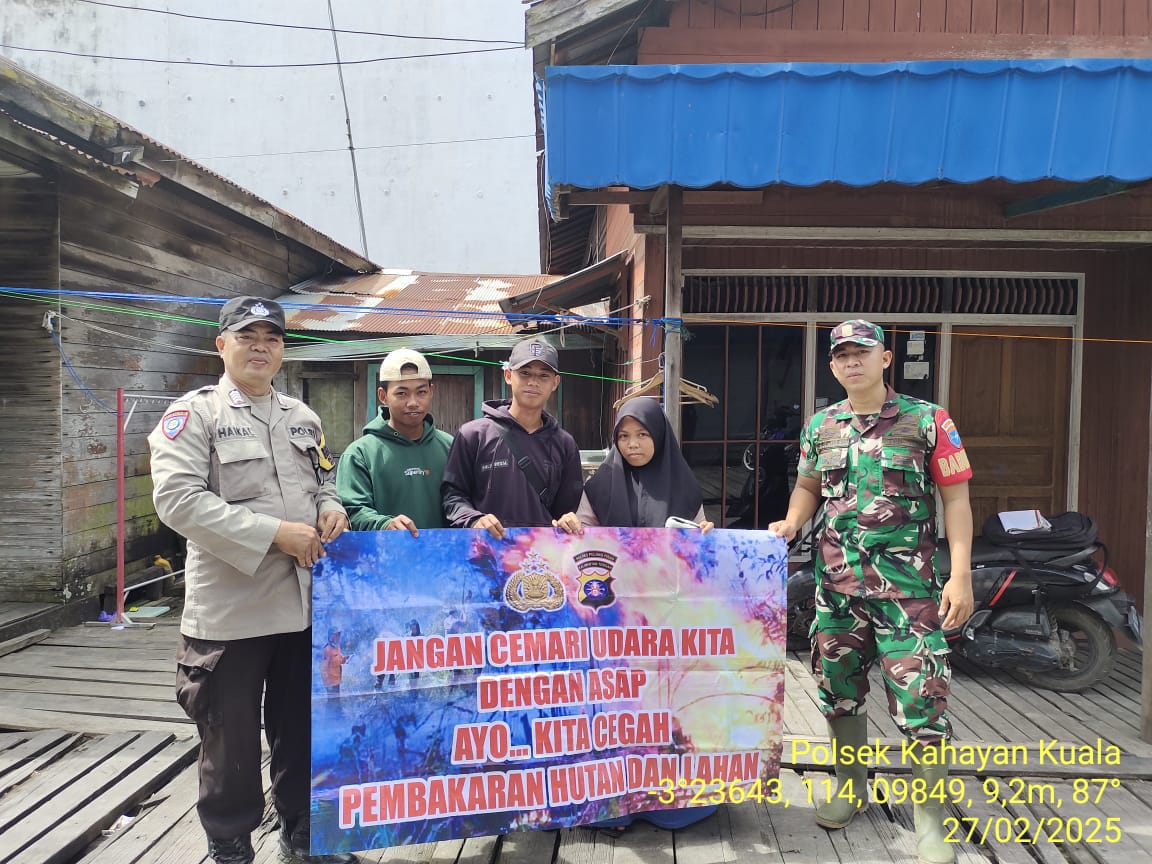 Polres Pulang Pisau- Polsek kahayan kuala, Resor Pulang Pisau, Polda Kalteng, melakukan sambang dan himbauan warga agar tidak membakar hutan dan lahan di Kecamatan kahayan kuala, kabupaten pulang pisau, Kamis (27/02/2025).Jam.10.00 Wib.