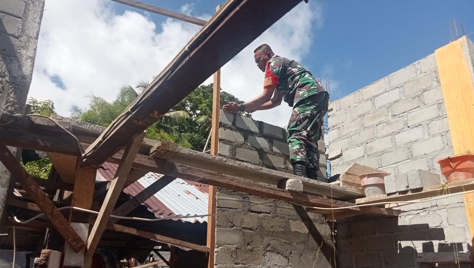 Dengan penuh semangat, Sertu La Hamja bersama warga setempat bergotong royong mengangkut material bangunan, memasang rangka rumah, serta melakukan pekerjaan lainnya agar rumah yang dibangun segera bisa ditempati oleh keluarga Bapak La Wiji.