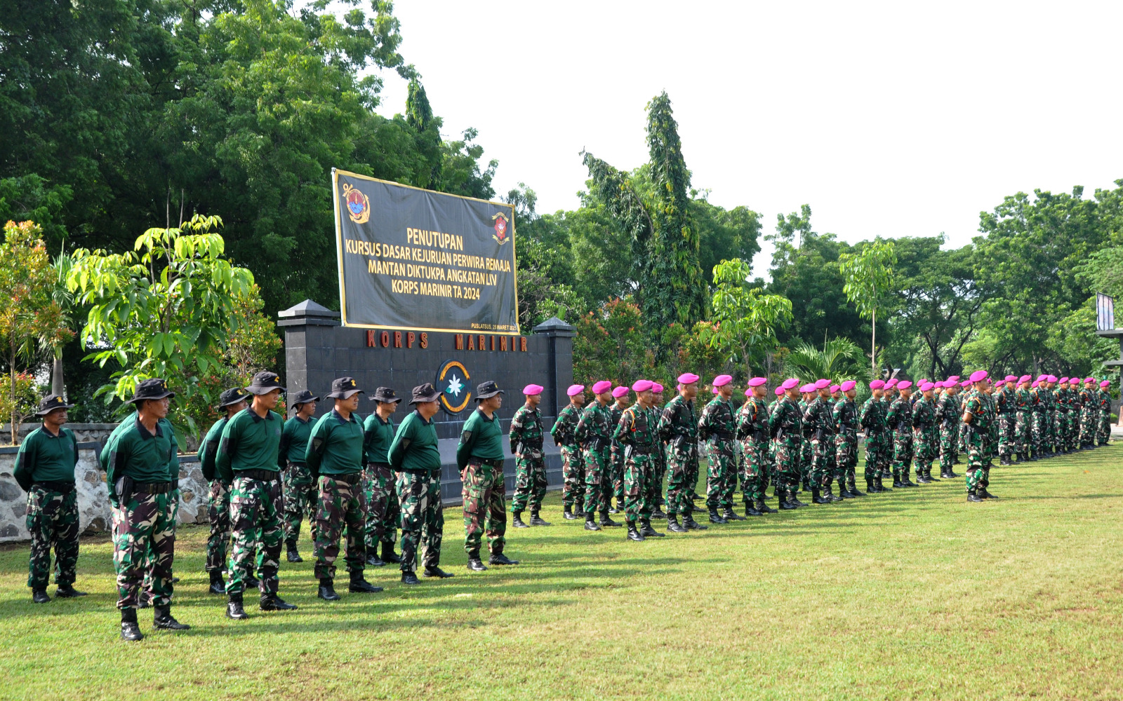 Dispen Kormar (Pasuruan) PW : Dengan resmi Komandan Komando Latih Korps Marinir (Dankolatmar) Kolonel Marinir Dede Harsana, S. A.P., Han, menutup brifieng penutupan kursus dasar kejuruan Perwira Remaja di lapangan apel Mako Puslatsus Grati, Pasuruan. Selasa (25/03/2025).