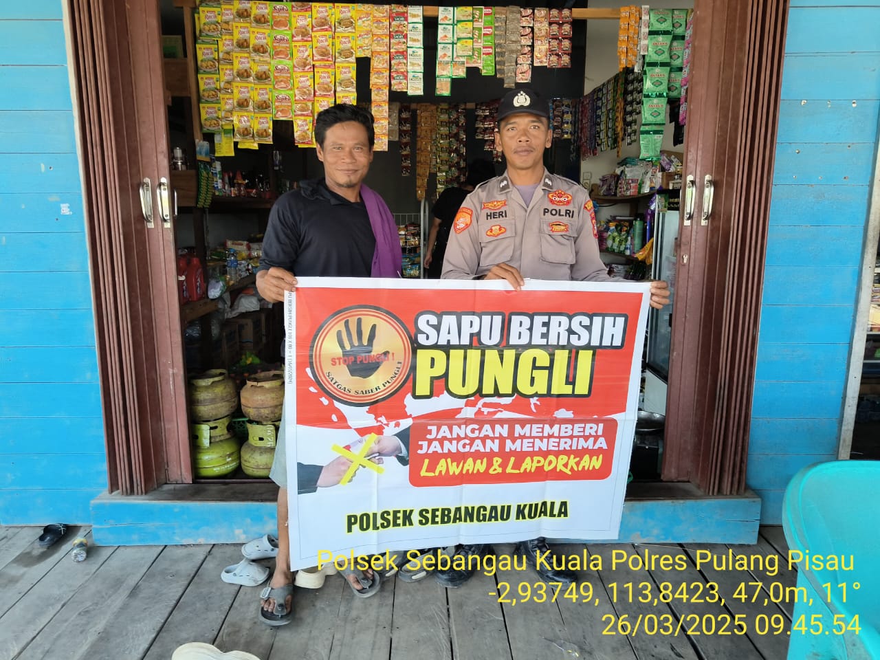 Polsek Sebangau Kuala Polres Pulang Pisau Polda Kalteng melaksanakan sosialisasi E Sapu bersih pungutan liar di Desa Sebangau permai.