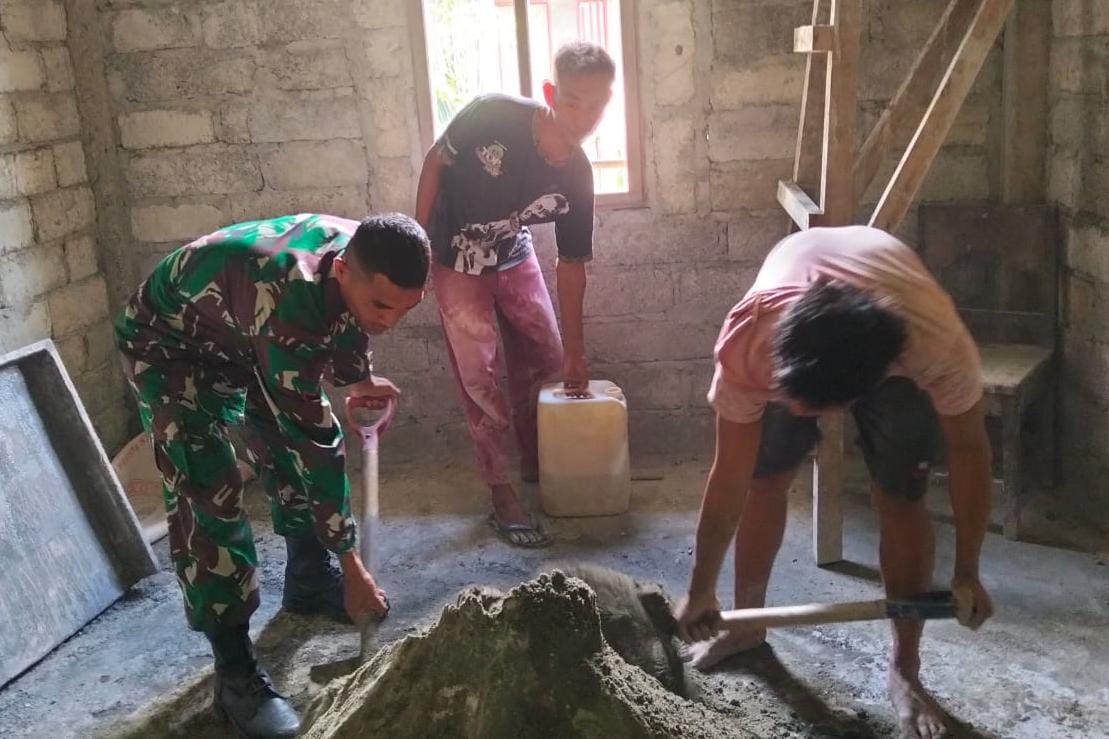 membantu melanjutkan pembangunan rumah milik salah satu warga binaannya, Bapak La Peto, di Desa Persiapan Tiang Bendera, Kecamatan Huamual Belakang, Kabupaten Seram Bagian Barat.