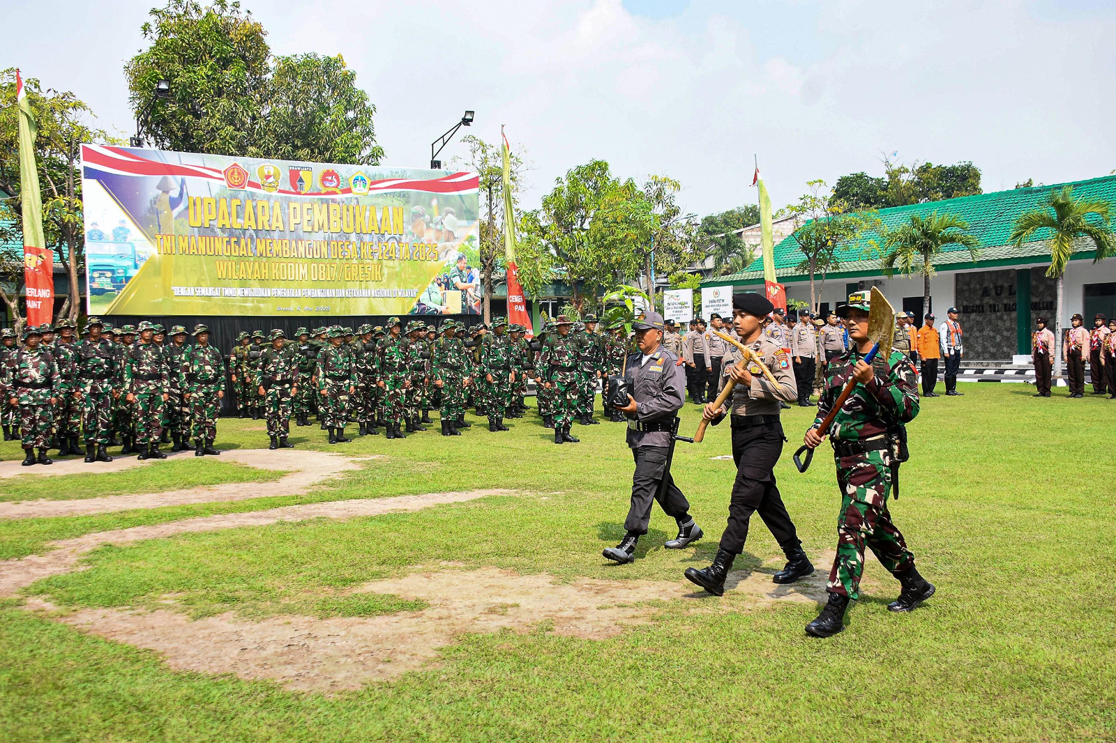 Pada kesempatan tersebut dr. H. Asluchul Alif M.Kes., MM., M.HP. menyampaikan bahwa TMMD yang diselenggarakan mulai tanggal 6 Mei sampai dengan 4 Juni 2025 tersebut bertujuan untuk membantu pemerintah dalam ikut serta mendukung akselerasi pembangunan baik secara fisik maupun non fisik khususnya di wilayah-wilayah tertentu dan tertinggal yang dilaksanakan secara berlanjut dan berkesinambungan, dengan harapan dapat menjadi salah satu solusi sekaligus bentuk peran serta nyata kita dalam mempercepat upaya Pembangunan Daerah di berbagai kelompok Nusantara khususnya di Kabupaten Gresik.