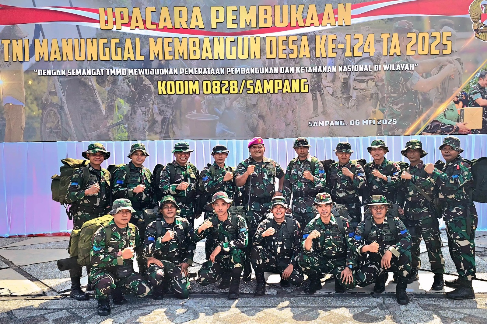 (Sampang). Komandan Pasmar 2 Brigadir Jenderal TNI (Mar) Nanang Saefulloh, S.E., M.M., yang diwakilkan Komandan Batalyon Kendaraan Pendarat Amfibi 2 Marinir (Danyon Ranratfib 2 Mar) Mayor Marinir Arif Wahyudi, M.Tr.Opsla., menghadiri upacara pembukaan TNI Manunggal Membangun Desa (TMMD) ke 124 tahun anggaran 2025 Kodim 0828/Sampang di Pendopo Trunojoyo, Kab. Sampang, Madura. Selasa (06/05/2025).