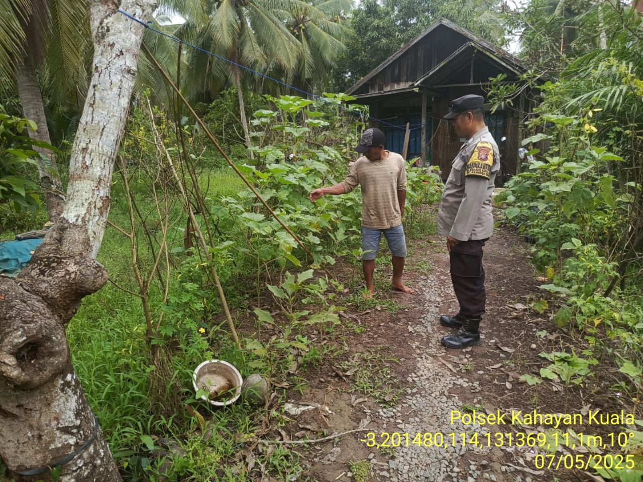 Dalam kesempatan ini personil Polsek Kahayan Kuala melakukan pengecekan lokasi lahan/pekarangan yang dimanfaatkan oleh para petani dan berbincang mengenai kendala atau pun hambatan apa saja yang dialami oleh petani.