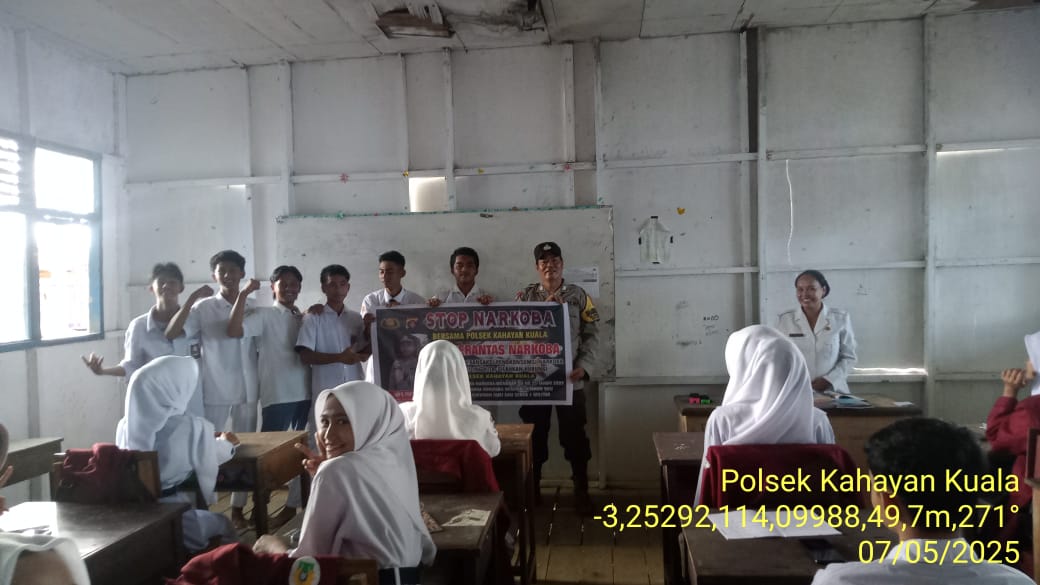 Polres Pulang Pisau – Polsek Kahayan kuala, Polres Pulang Pisau, Polda Kalteng, Pers Bhabinkamtibmas melaksanakan giat himbauan larangan dan stop narkoba di wilayah kecamatan Kahayan kuala Kabupaten Pulang Pisau Provinsi Kalimantan Tengah, Rabu (07/05/2025).