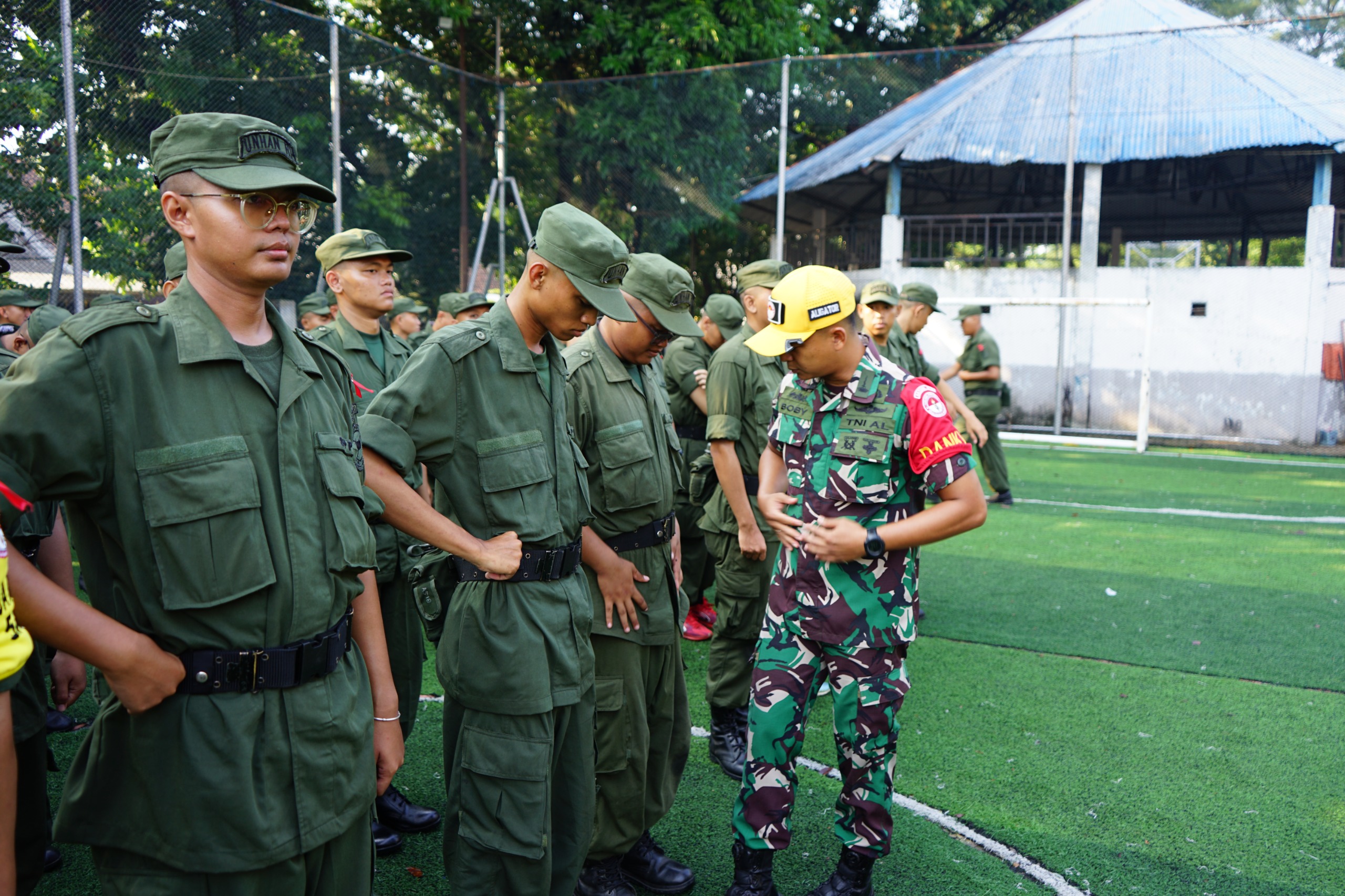TNI AL, Dispen Kormar, Pasmar 1 (Jakarta). Prajurit Batalyon Infanteri 2 Marinir (Yonif 2 Mat) memerikan pelatihan dasar Peraturan Baris Berbaris (PBB) serta pembekalan tentang kerapian berseragam kepada siswa Sarjana Penggerak Pembangunan Indonesia (SPPI) Batch 3, dalam kegiatan pembinaan karakter yang bertempatan di Yonif 2 Marinir Cilandak, Jakarta Selatan, Rabu (07/05/2025).