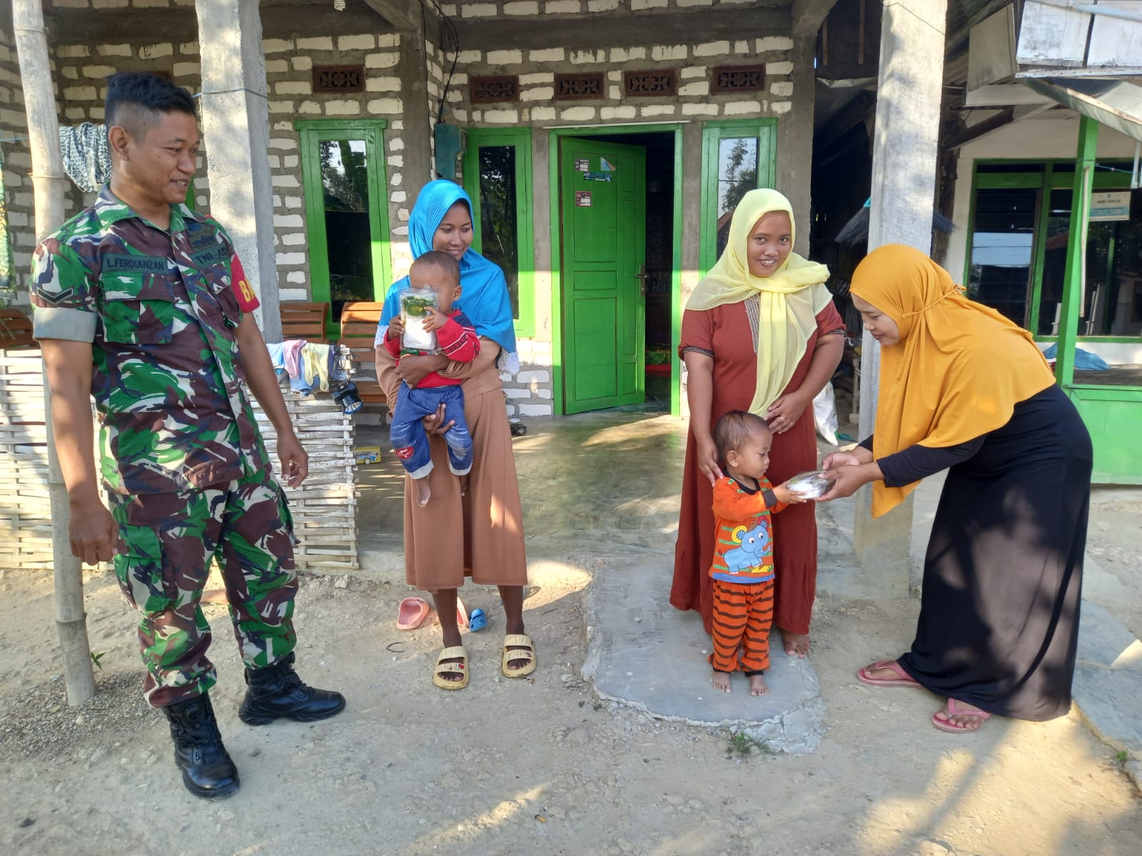 Kunjungan ini merupakan bagian dari upaya pencegahan dan penanganan dini terhadap stunting yang masih menjadi perhatian serius pemerintah. Dalam kegiatan tersebut, Serda Lutfi dan Helmi kader kesehatan desa menyerahkan bantuan berupa makanan tambahan bergizi sebagai dukungan nutrisi bagi anak yang dikunjungi.