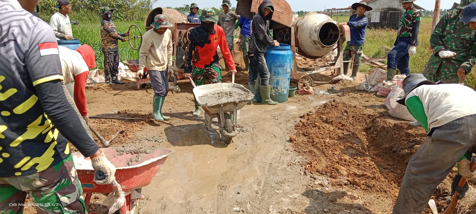 TNI AL, Pasmar 1. Sebagai bentuk nyata kemanunggalan TNI dengan pemerintah daerah, dan masyarakat, prajurit Batalyon Marinir Pertahanan Pangkalan (Yonmarhanlan) XII Pontianak yang sedang melaksanakan program TNI Manunggal Masuk Desa (TMMD) Ke-124 BKO Kodim 1201/Mempawah TA. 2025 bersama masyarakat membangun sarana dan prasarana di Desa Purun Kecil, Sungai Pinyuh, Kabupaten Mempawah, Jum’at (09/05/2025).