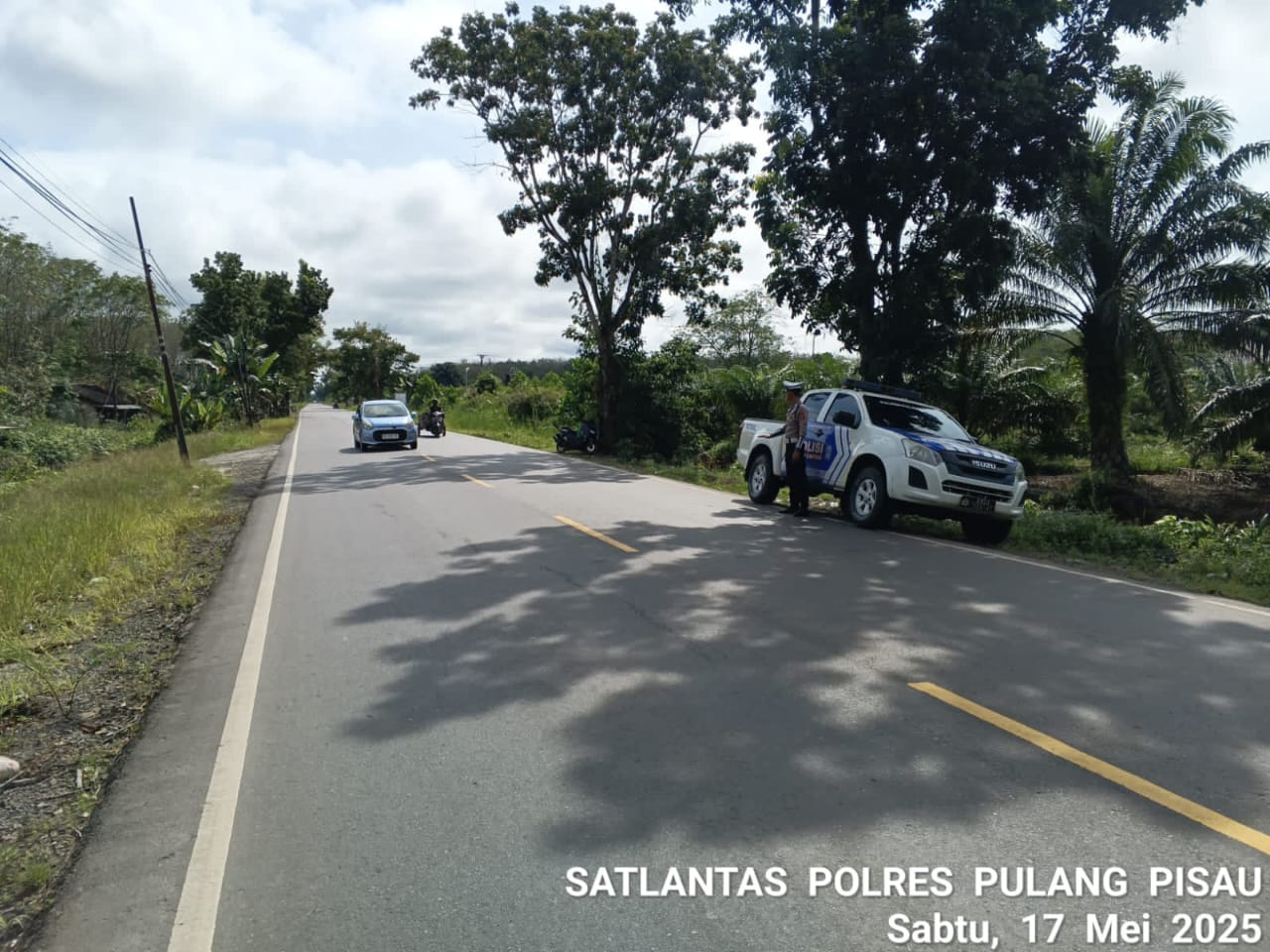 Polres Pulang Pisau – Satuan Lalu Lintas – Untuk mencegah dan menekan angka kecelakaan, Personil Satlantas Polres Pulang Pisau melaksanakan patroli di kawasan Rawan Laka (Rawan Kecelakaan), Sabtu (17/5/2025) siang