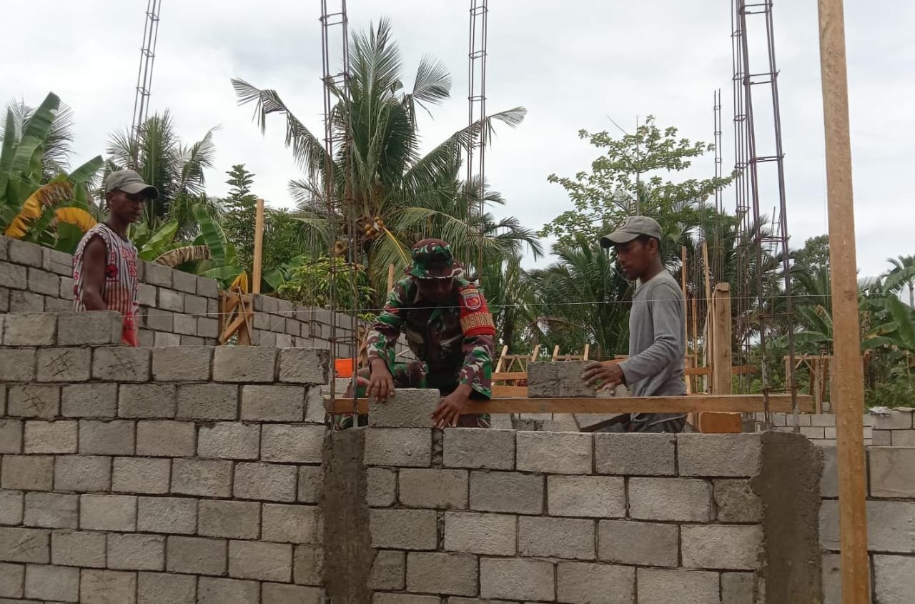 SBB PW Sebagai wujud nyata kepedulian terhadap warga binaan, Babinsa Koramil 1513-01/Piru, Kopda La Dahlah, turun langsung membantu proses pembangunan rumah milik Bapak La Sait, warga Dusun Olas, Desa Lokki, Kecamatan Huamual, Kabupaten Seram Bagian Barat, pada Sabtu (17/5).