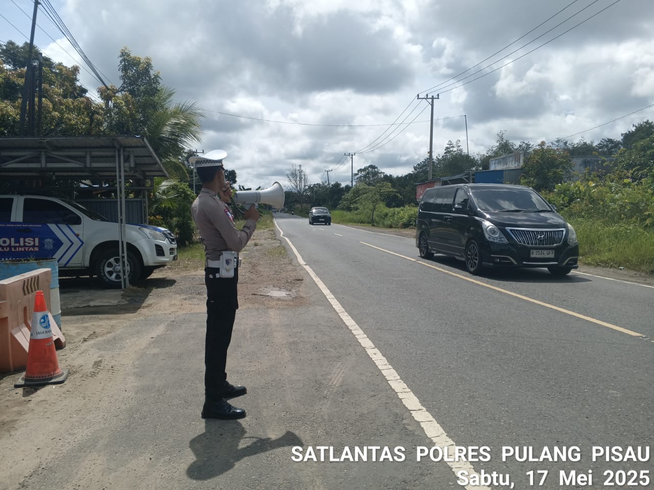Polres Pulang Pisau – Satuan Lalu Lintas – Satuan Lalulintas (Sat Lantas) Pulang Pisau melalui Kanit Kamsel Aiptu Esra Pada melaksanakan Pendidikan Masyarakat Lalu Lintas, Penerangan Keliling, dan Penyuluhan (Dikmas Lantas Penling Penluh) kepada masyarakat, pada Sabtu 17 Mei 2025 pagi pukul : 07.00 Wib.