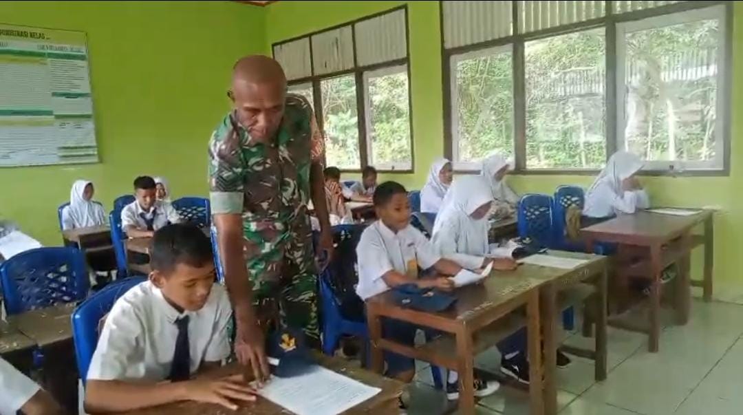 SBB PW Dalam upaya menanamkan nilai-nilai kebangsaan sejak dini, Babinsa Koramil 1513-01/Piru, Kopda La Sukrin, melaksanakan kegiatan wawasan kebangsaan (wasbang) di SD Inpres Tirta Mandiri, Dusun Tirta Mandiri, Desa Waesala, Kecamatan Huamual Belakang, Rabu (21/5).