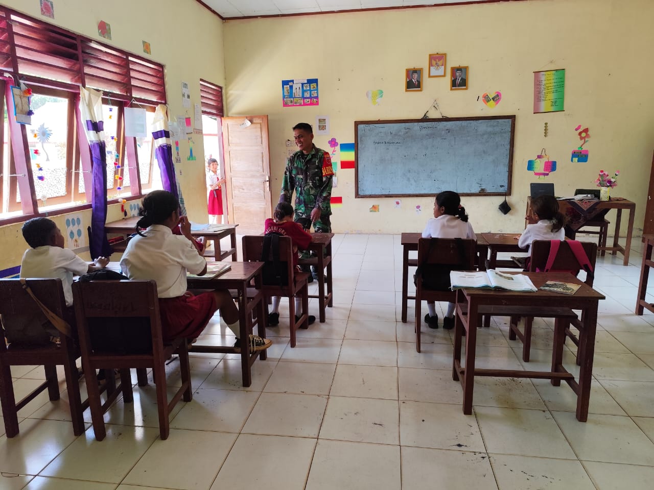 Babinsa Ursana Koramil 1513-03 Kairatu, Sertu Irwan Derlauw, melaksanakan kegiatan Pembinaan Perlawanan Wilayah (Wanwil), Jumat (tanggal disesuaikan). Kegiatan tersebut diisi dengan penyampaian materi tentang Cinta Tanah Air kepada siswa kelas 5.